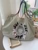 Bolsa Tote de Lona Bordada para Compras para Mujer de Gran Capacidad Nylon Cruzada Plegable Portátil Bolso de Mano Bolso de Hombro Tote