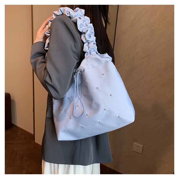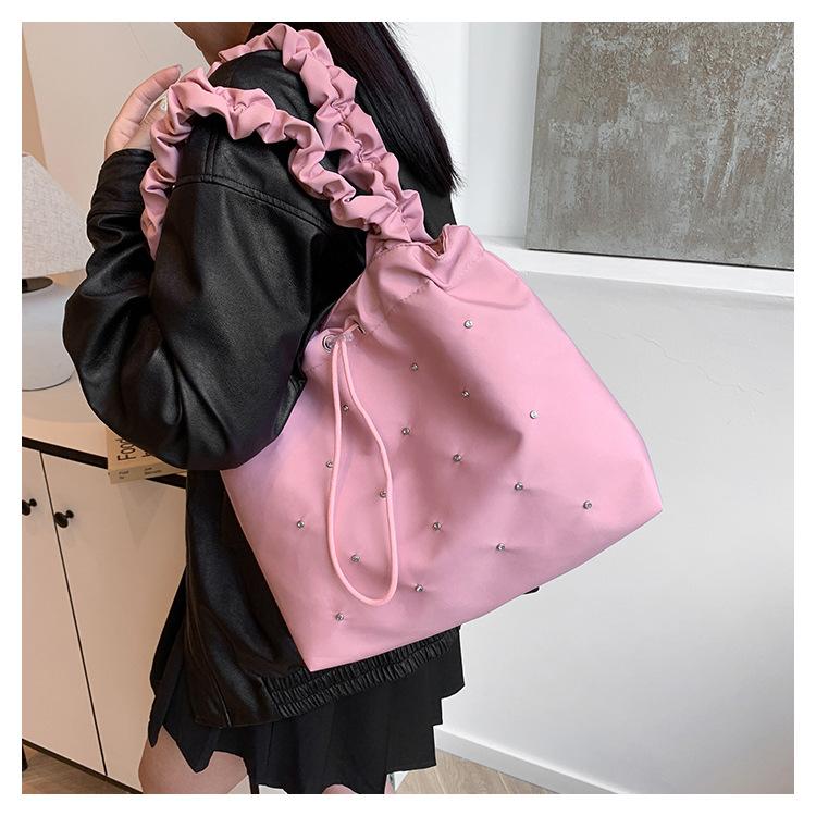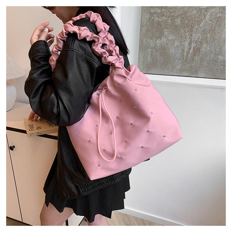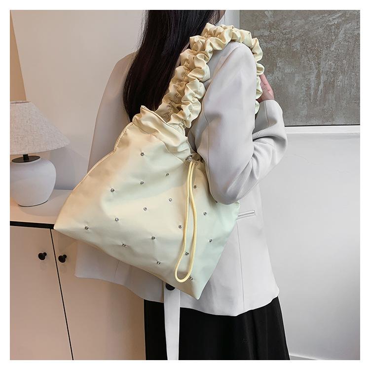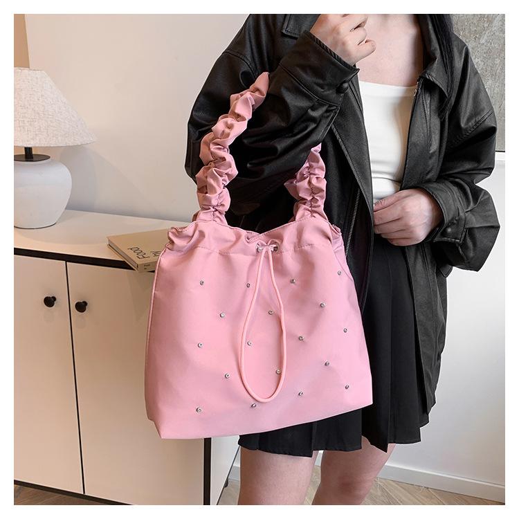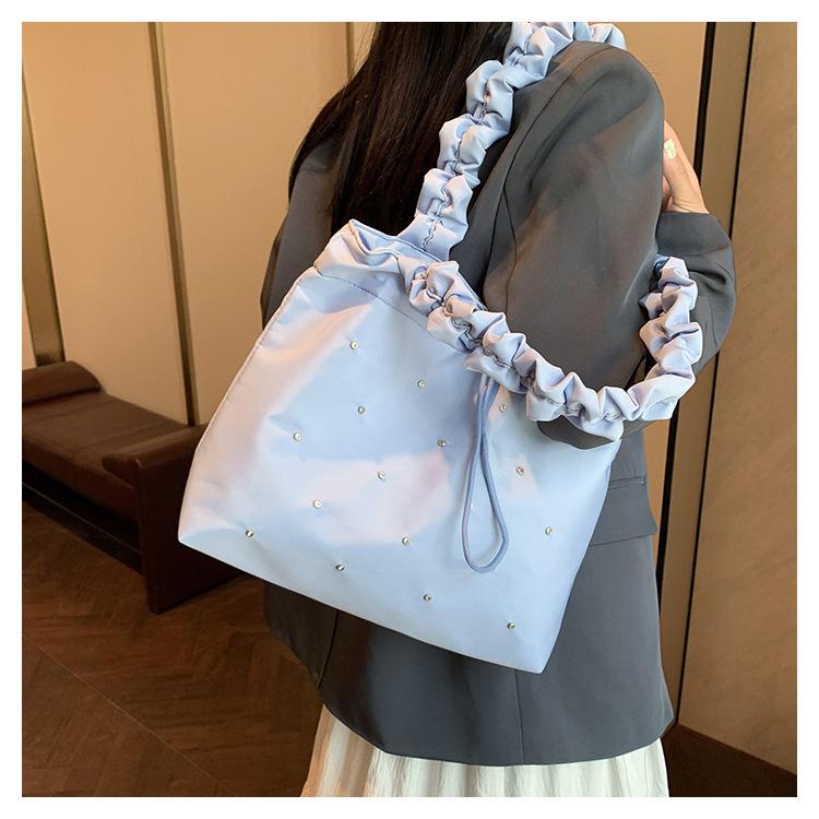 Verano Ocio Plisado Hombro Estudiante Universitario Clase Estilo Occidental Bolso de Gran Capacidad para Mujer 2024 Nuevo Bolso Tote para Viaje