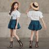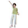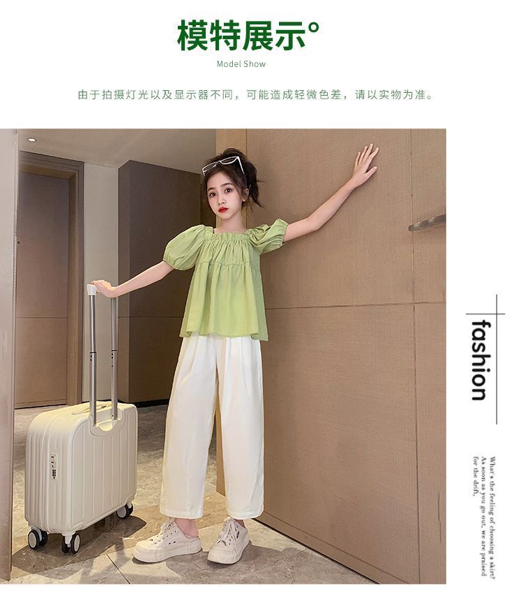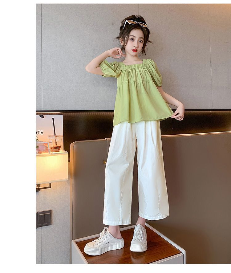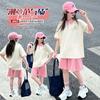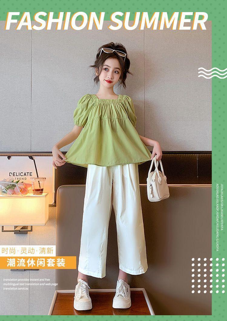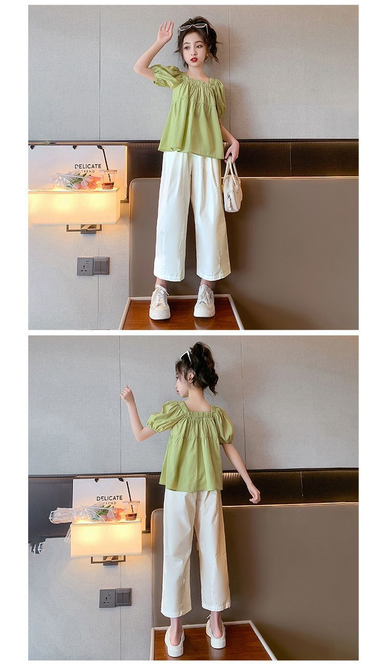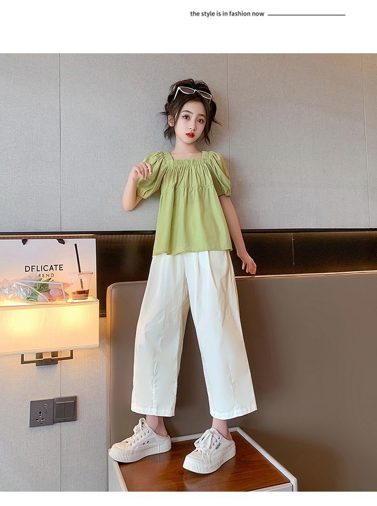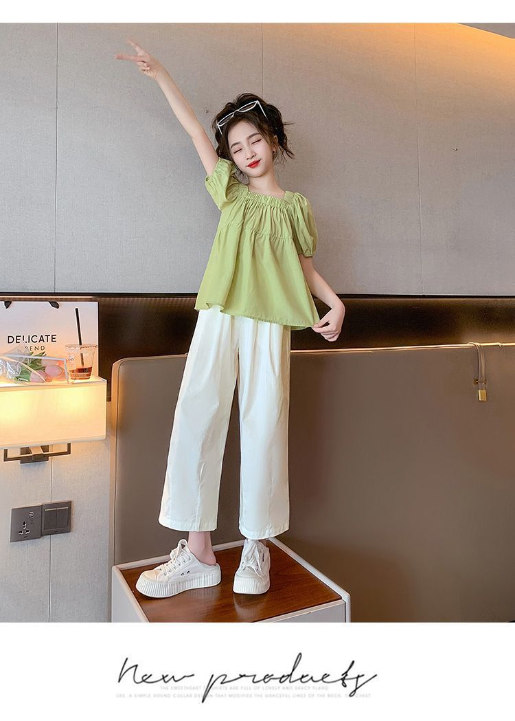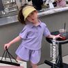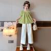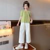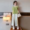 Traje casual de verano para niñas de color sólido para combinar con todo, verano 2024, manga corta, dos piezas, conjunto moderno
