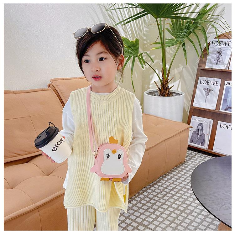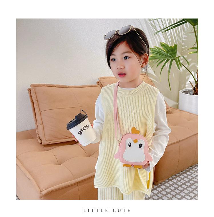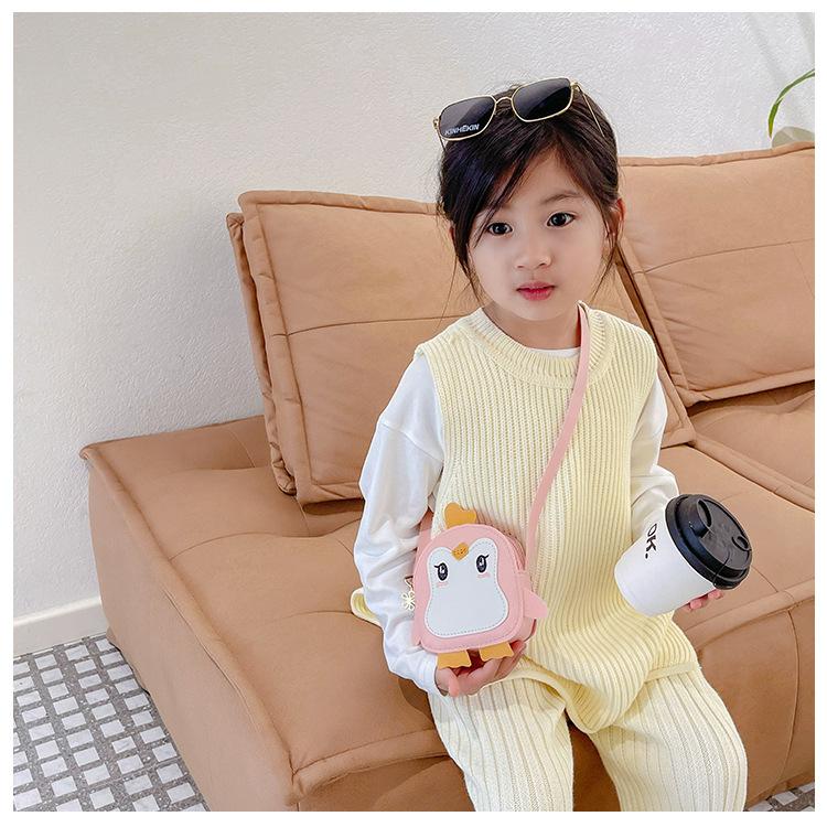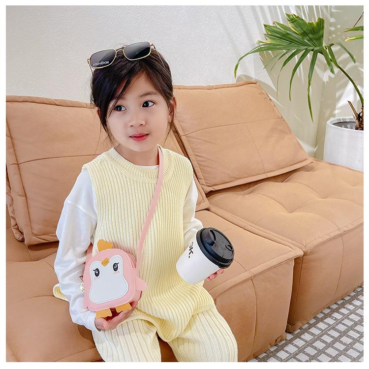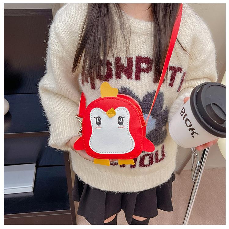 Venta al por mayor lindo pingüino de dibujos animados bolso pequeño moda para niñas PU monedero estilo coreano bolso de hombro mensajero para niños comercio exterior