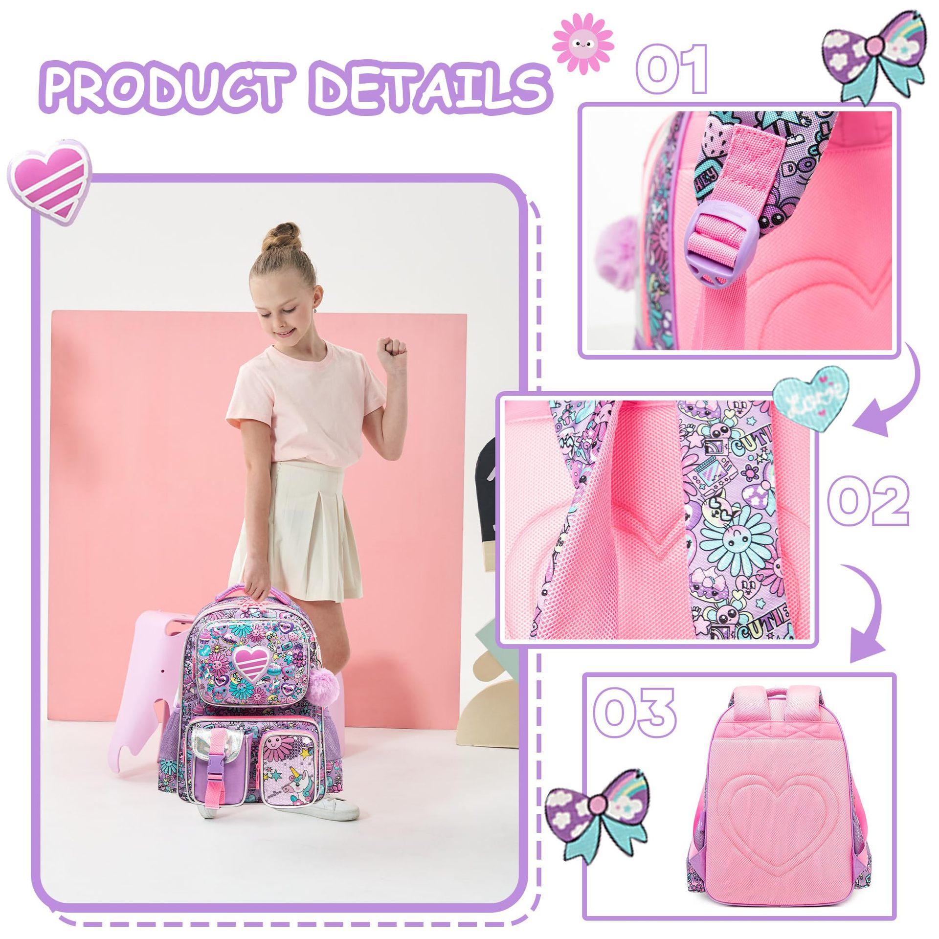 [Mochilas para niñas de uso general] Esta bonita mochila escolar para niñas es ideal para diversas ocasiones, como ir a la escuela, viajar, hacer senderismo, acampar o hacer turismo. Esta bonita mochila para estudiantes de primaria es la mejor opción para regalos de regreso a clases, Navidad, Año Nuevo y cumpleaños.