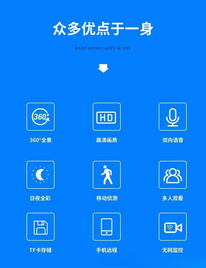 Cámara Wifi de Vigilancia Panorámica de 360 Grados para el Hogar Inalámbrica de Ultra Alta Definición Visión Nocturna Movimiento Remoto de Cabeza 1080P
