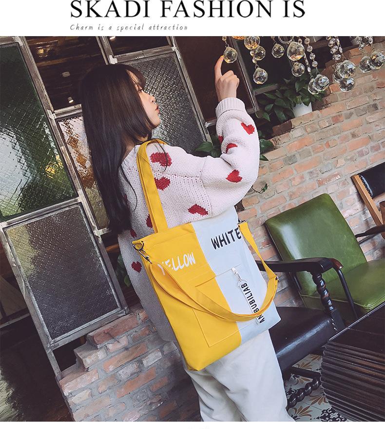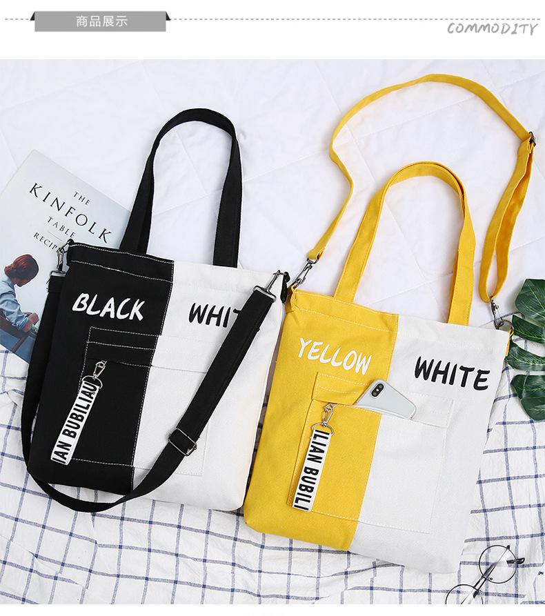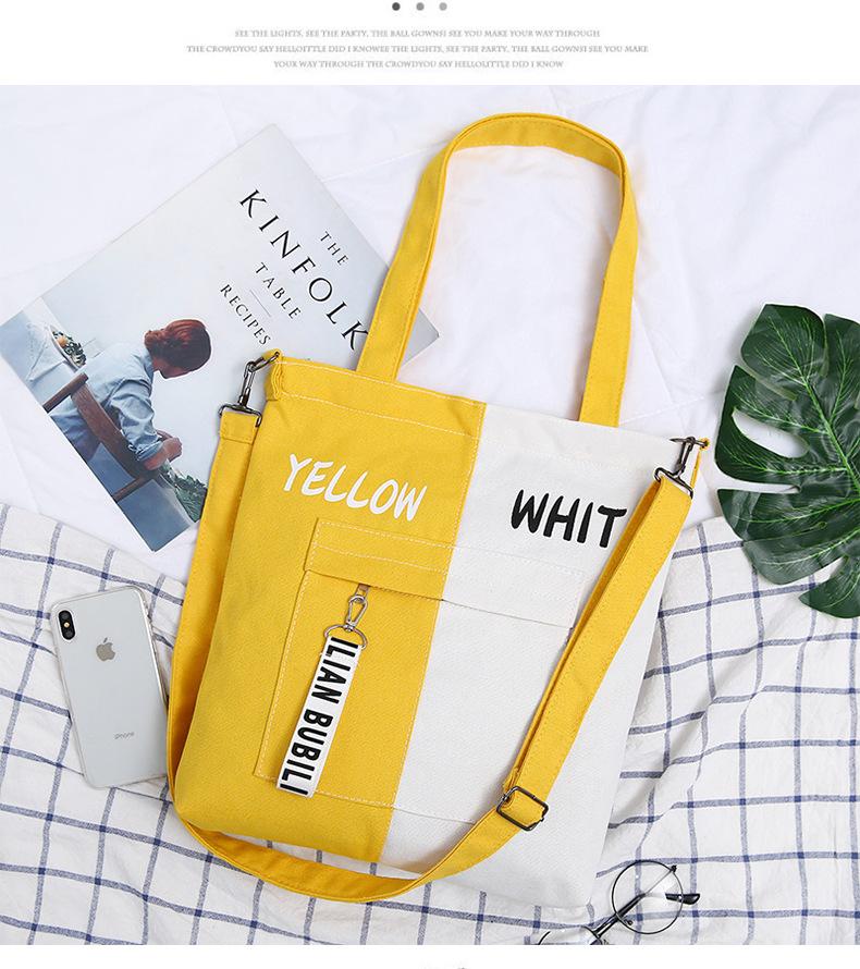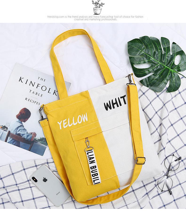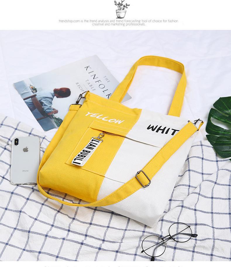 Nuevo bolso de lona de estilo coreano para mujer, bandolera de un solo hombro con costuras, bolso de lona combinable a la moda para mujer, bolso de compras