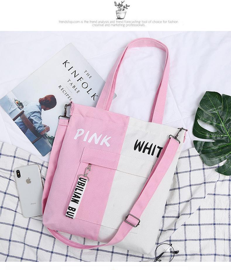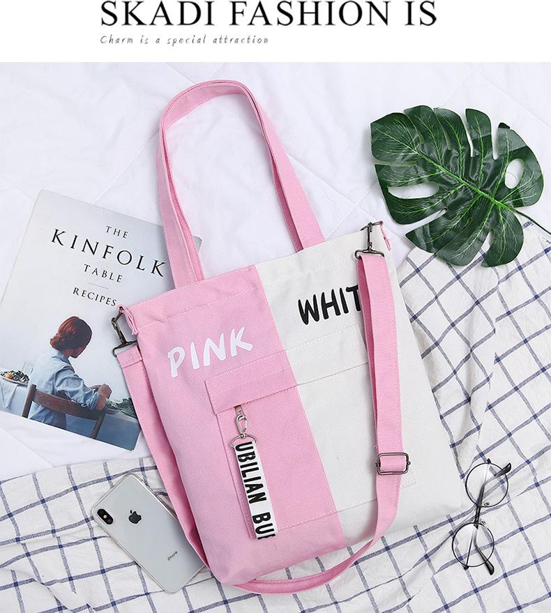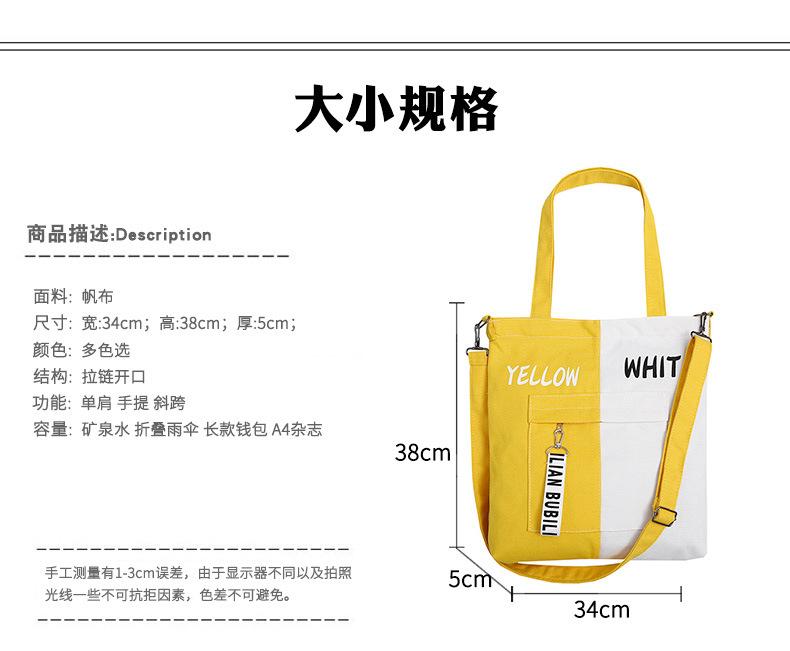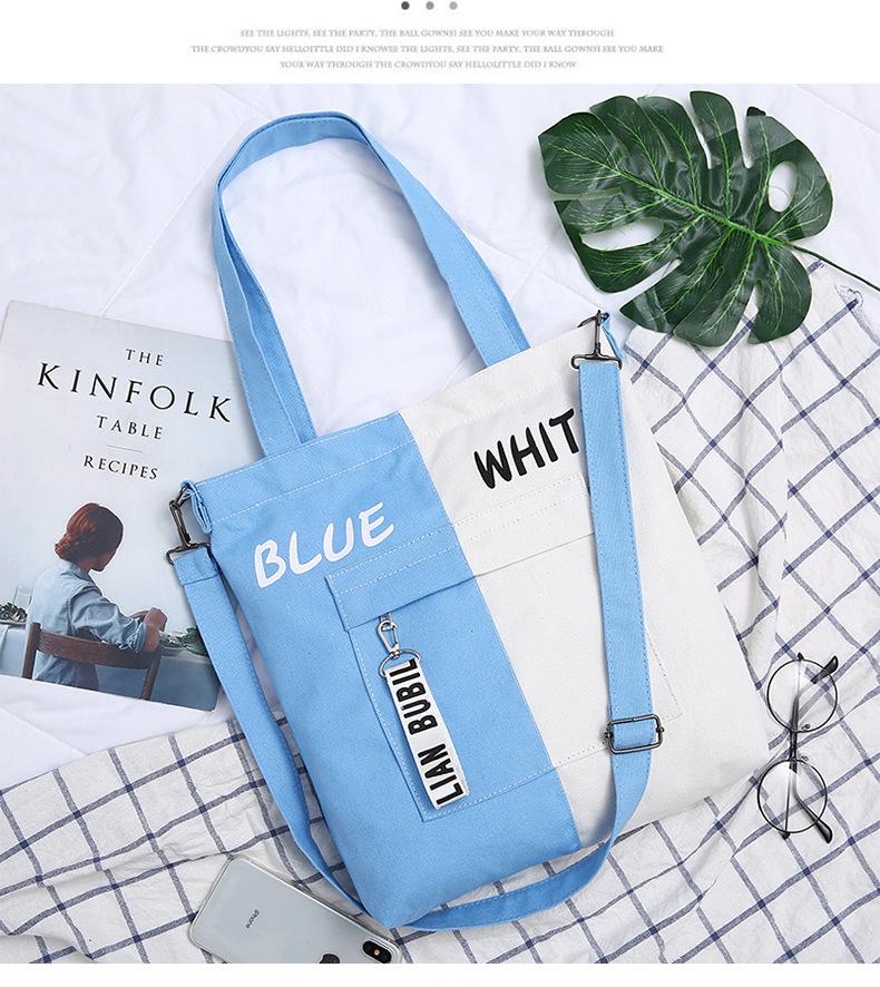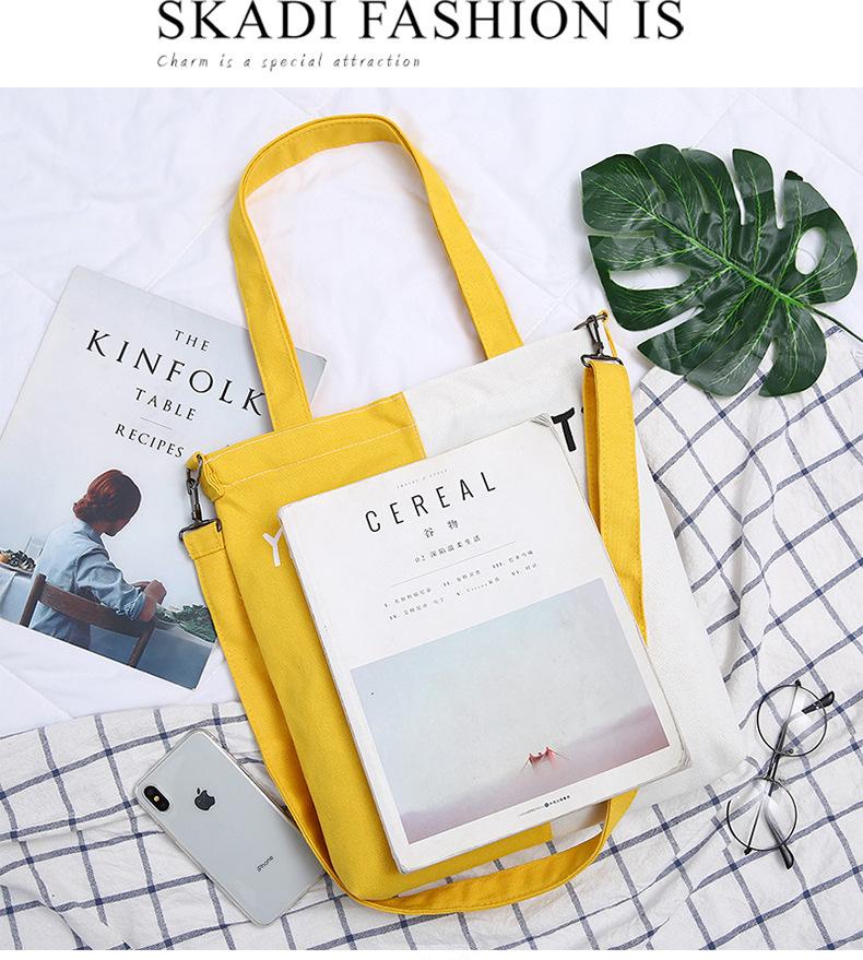 Nuevo bolso de lona de estilo coreano para mujer, bandolera de un solo hombro con costuras, bolso de lona combinable a la moda para mujer, bolso de compras