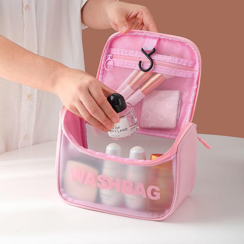 Bolsa de Aseo Impermeable de PVC Viaje Gran Capacidad Bolsa de Cosméticos Portátil Linda de Mano Bolsa de Almacenamiento de Maquillaje Diseño Transparente