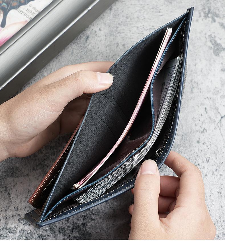 Billetera corta para hombre de comercio exterior transfronterizo, moda, múltiples tarjeteros, cinturón cosido, cremallera, billetera para estudiantes jóvenes