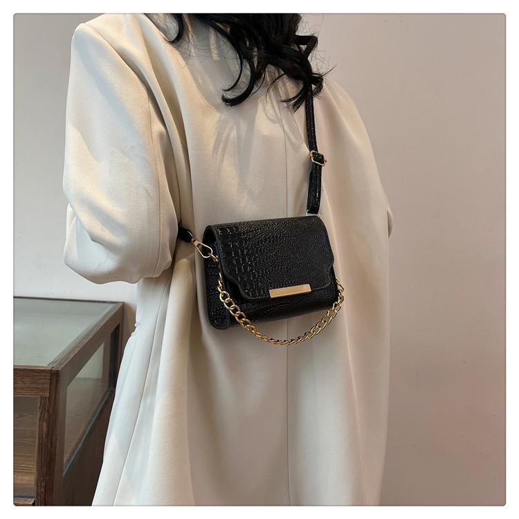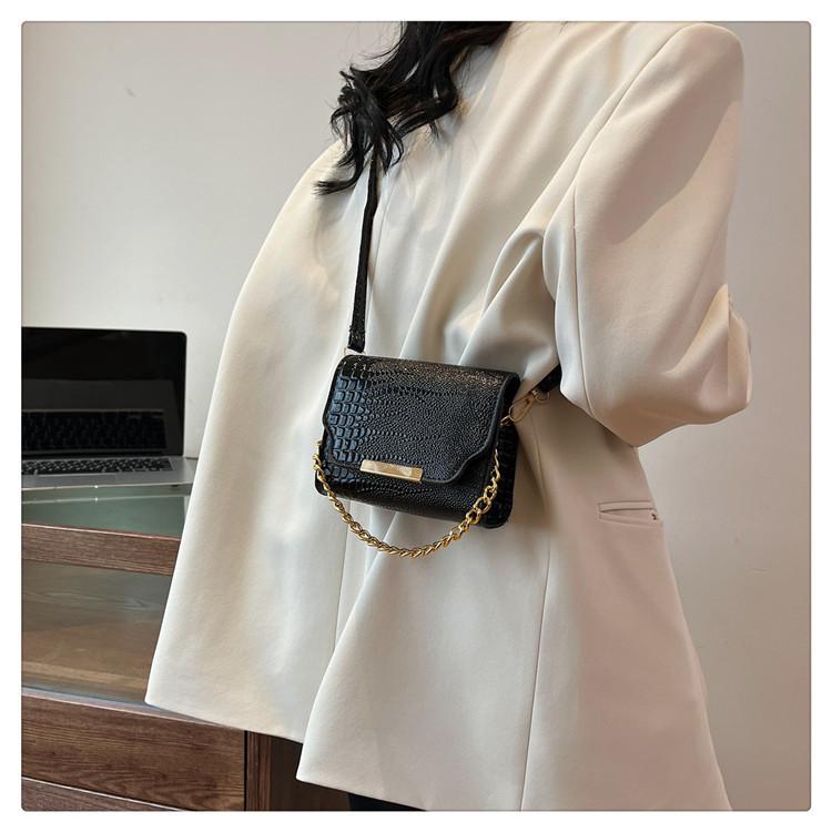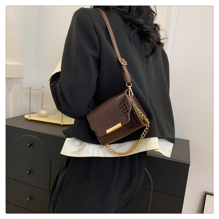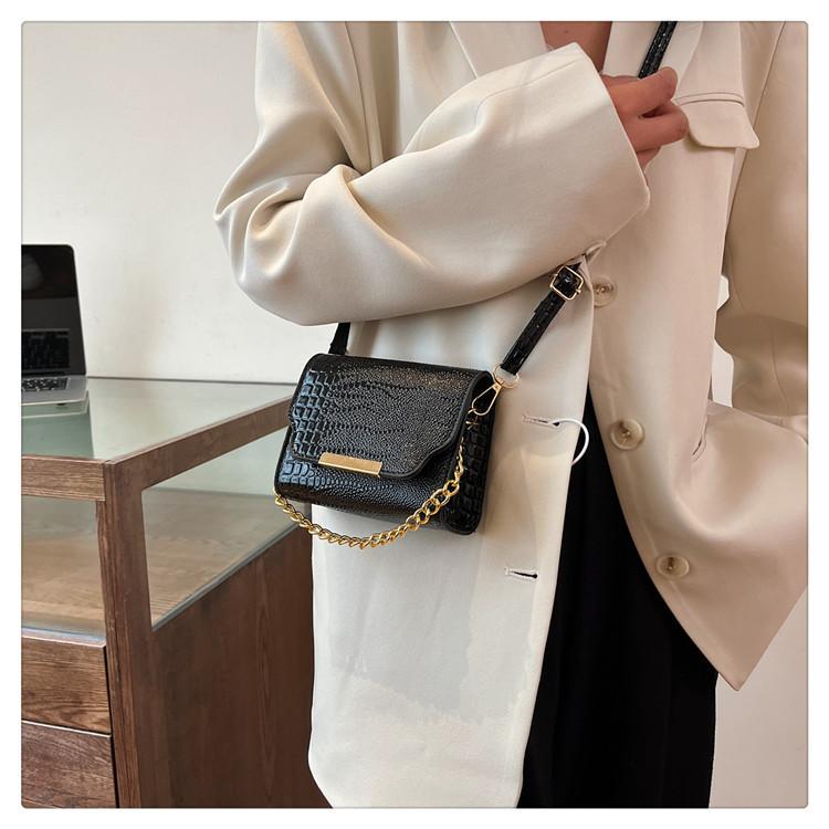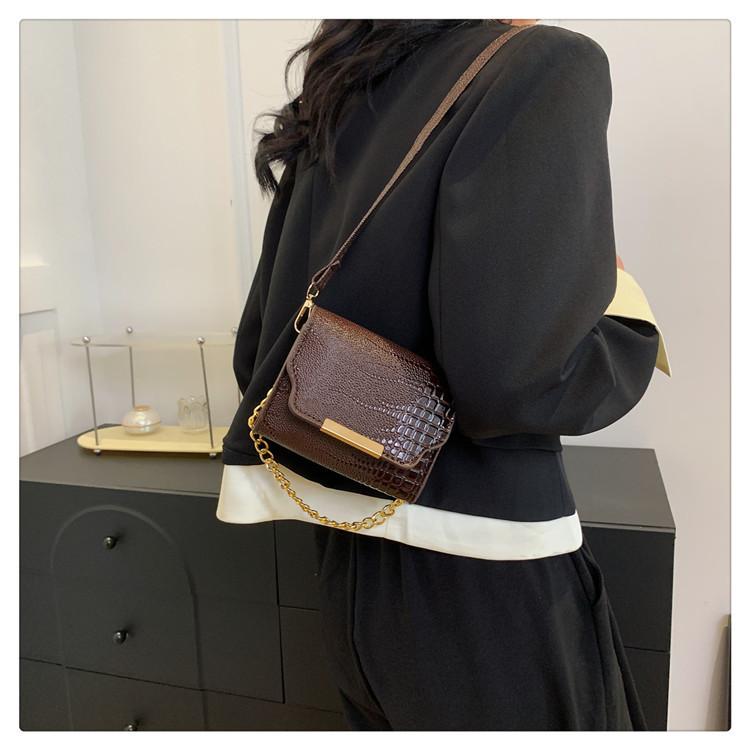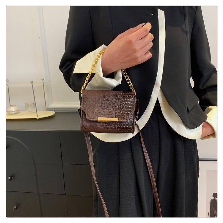 Bolso pequeño cuadrado para mujer con estampado de cocodrilo, informal, de verano 2024, estilo coreano retro, a la moda, color liso, sencillo, bandolera de hombro.