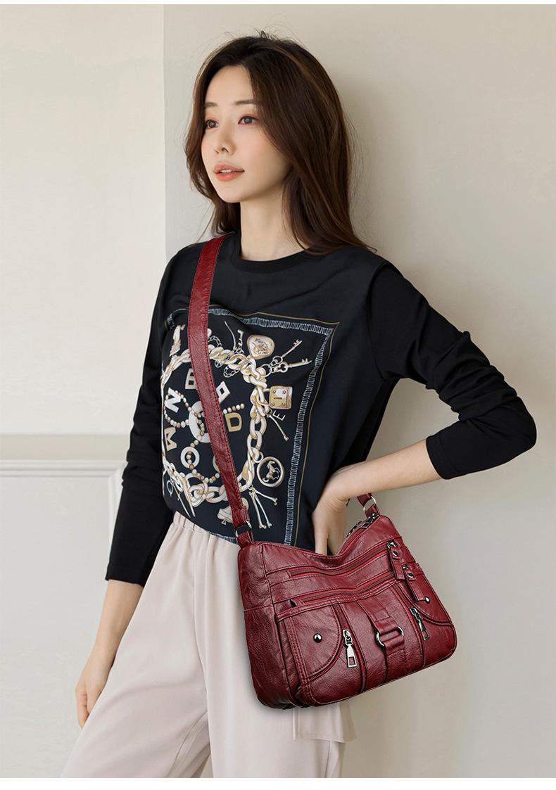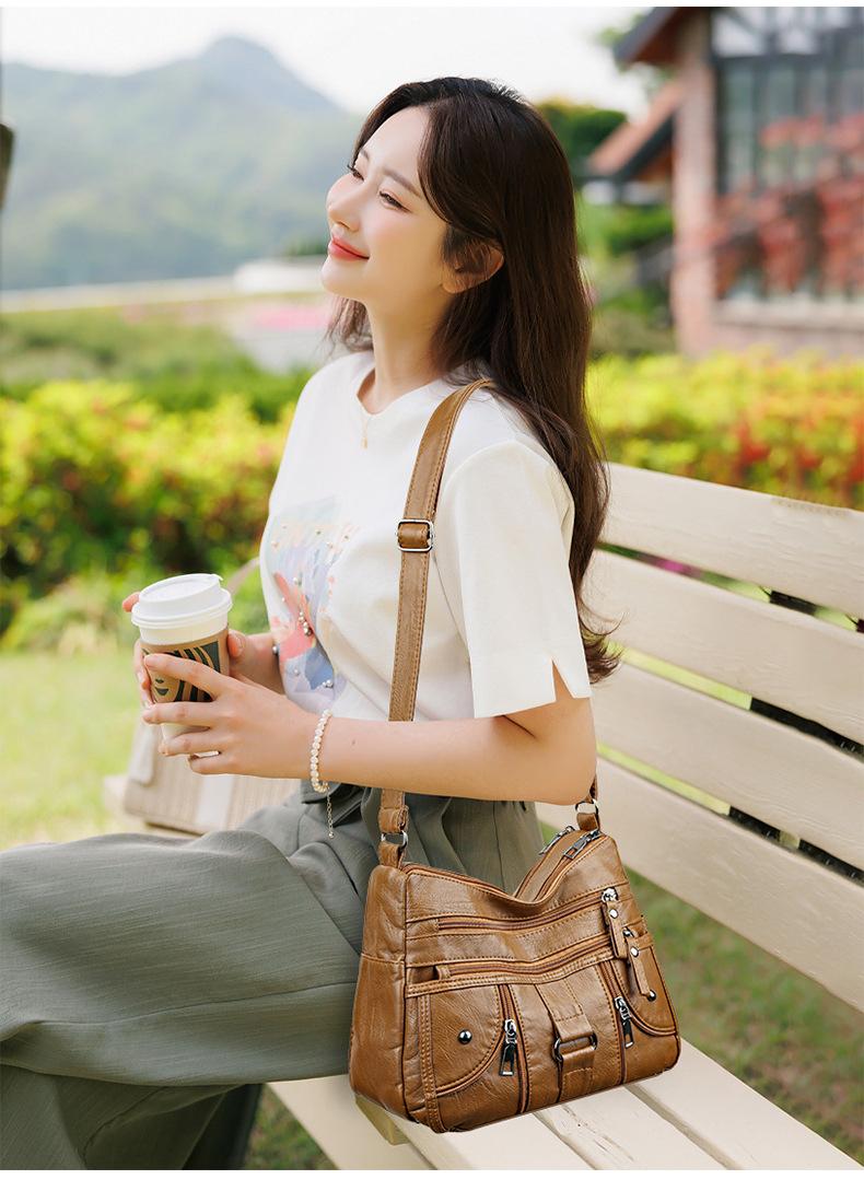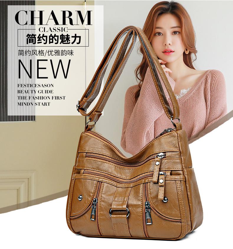 Bolso de Mujer de Cuero Suave 2024 Nueva Moda Versátil Gran Capacidad Bolso Cruzado Bolso para Mujeres de Mediana Edad y Mayores Bolso para Suegra