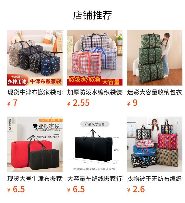 Stock Listo Bolsa de Equipaje Grande de Tela Oxford Color Sólido Bolsa Tejida Viaje Gran Capacidad Almacenamiento Cremallera Bolsa de Embalaje para Mudanza