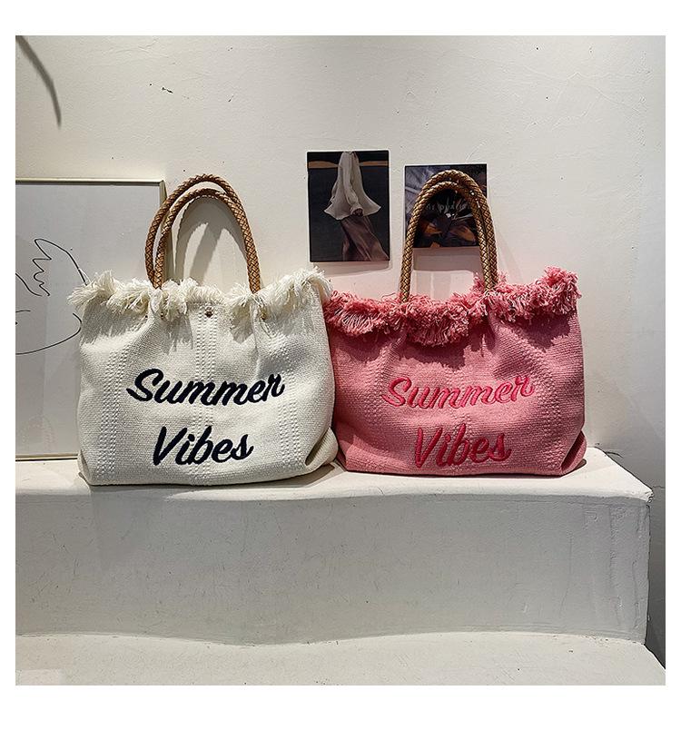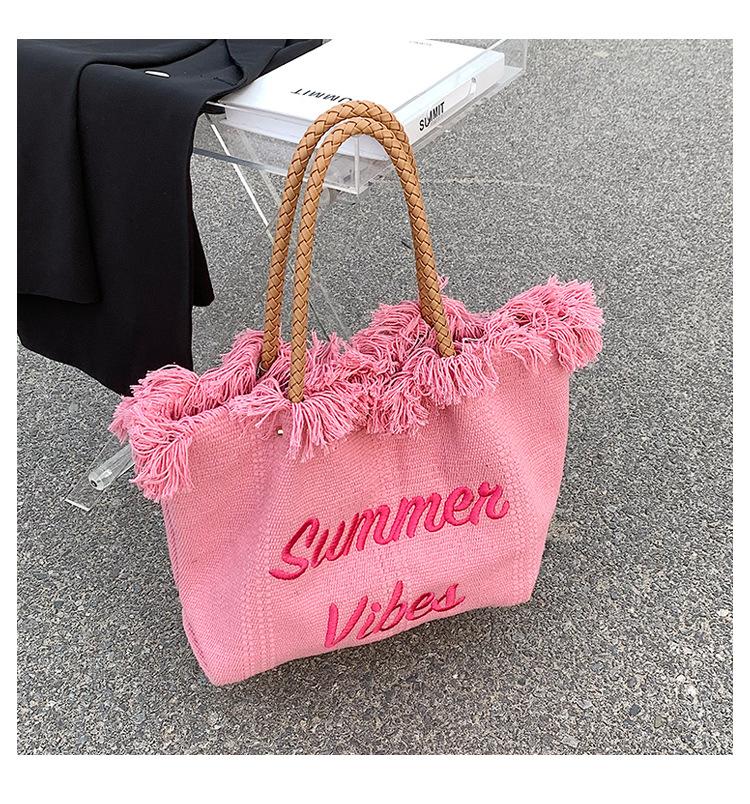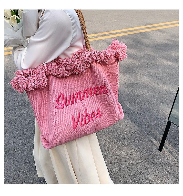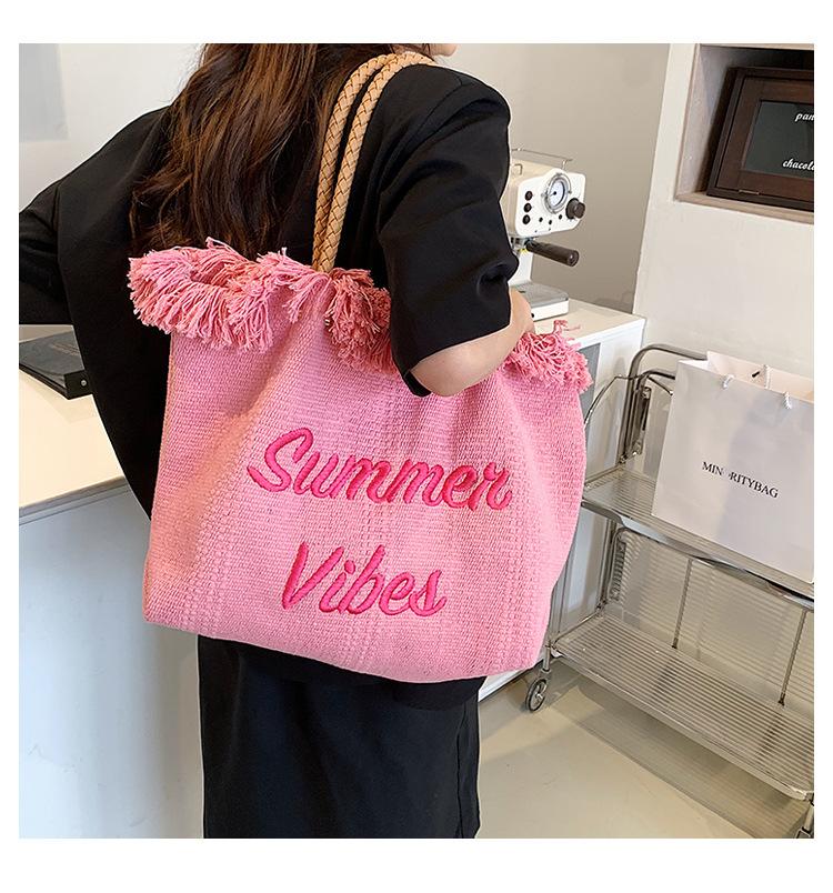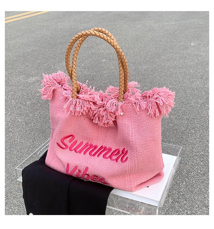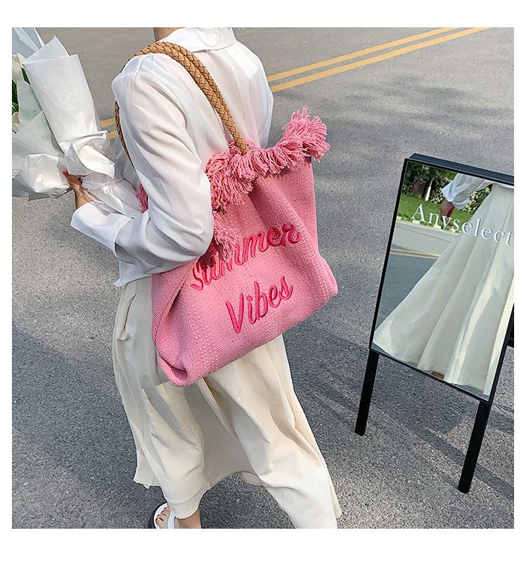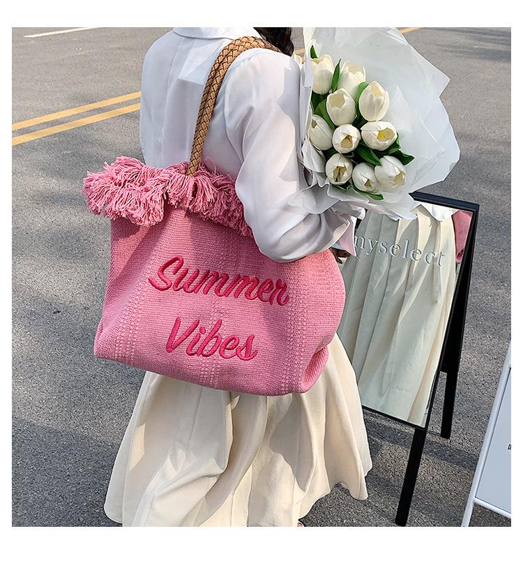 Bolso de Gran Capacidad Bolso de Lona Estampado Rosa para Mujer Bolso de Mano Sencillo para Combinar con Todo Bolso Tote Elegante para Viajar al Trabajo
