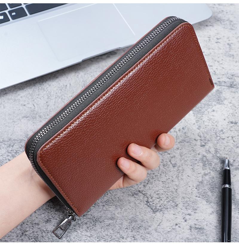 Cartera larga con cremallera para hombre, cartera de gran capacidad, bolso de mano, bolso para teléfono móvil, tarjetero informal