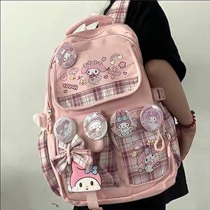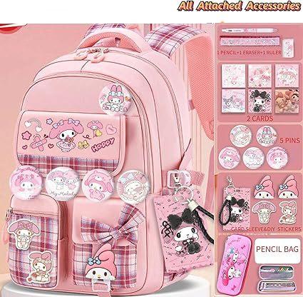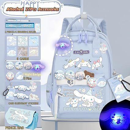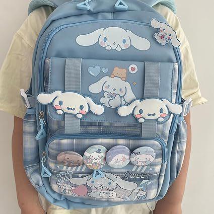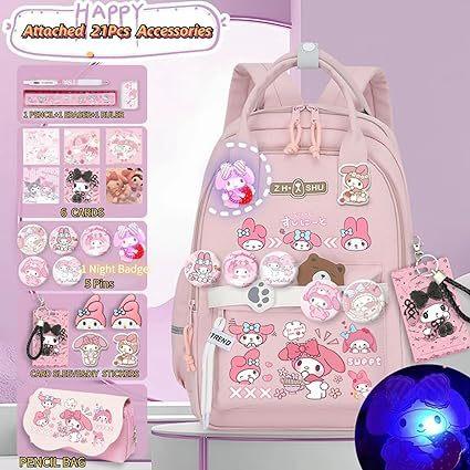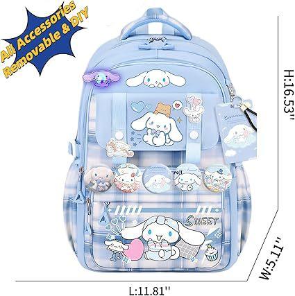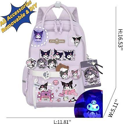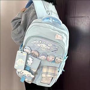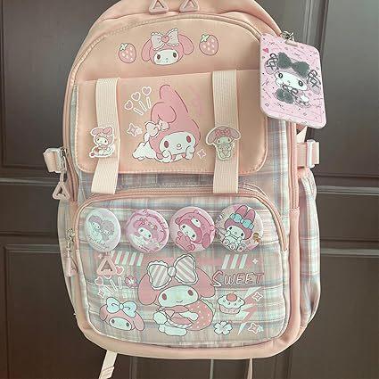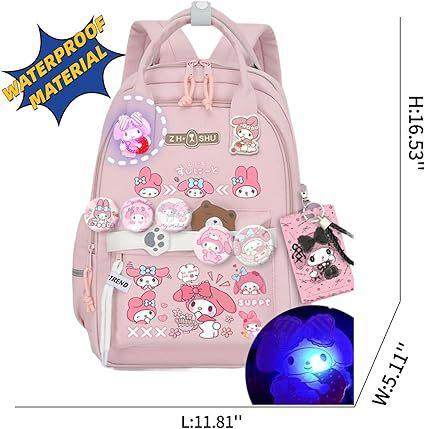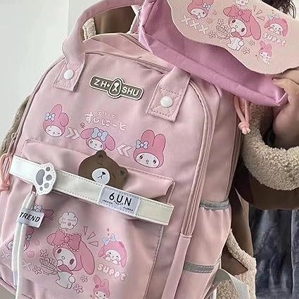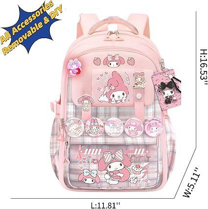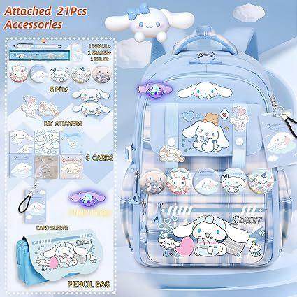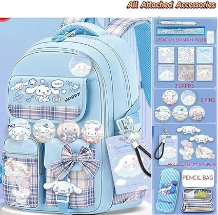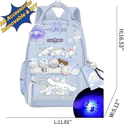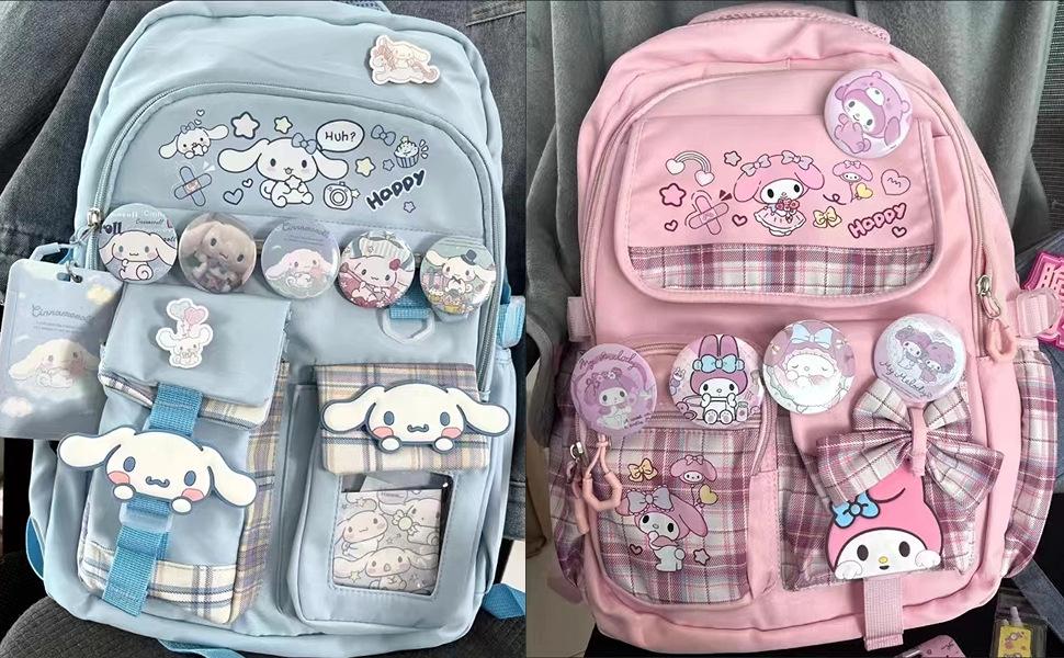 Mochila Kawaii con 18 Piezas Accesorios Animación Dibujos Animados Antirrobo Viaje Estética Nuevo Semestre Bolsa de Regalo con Lindo