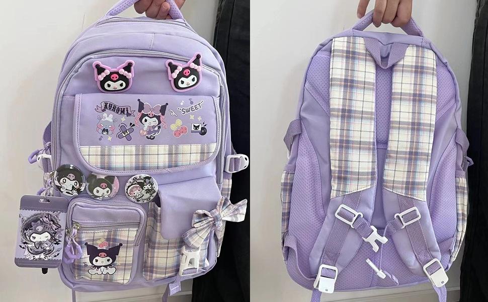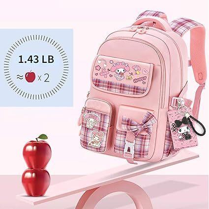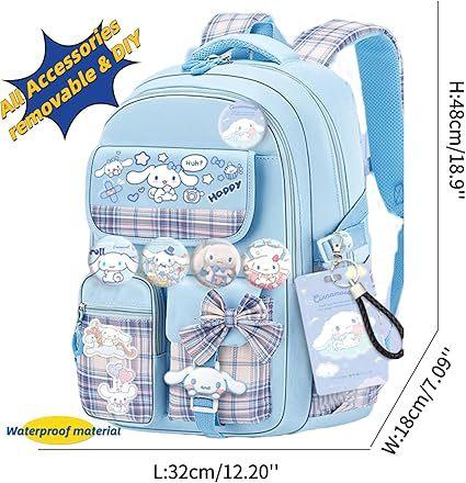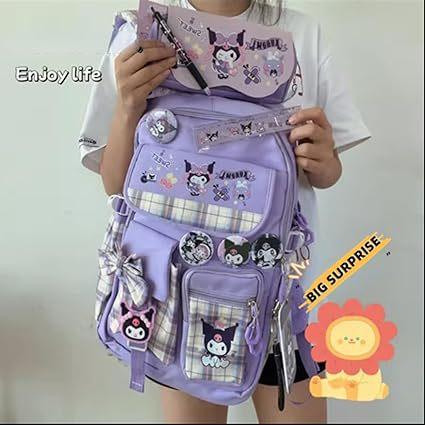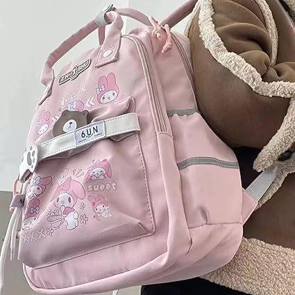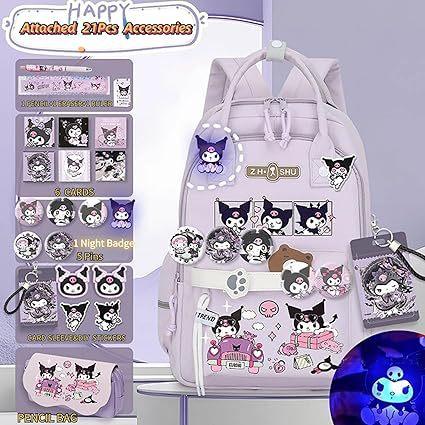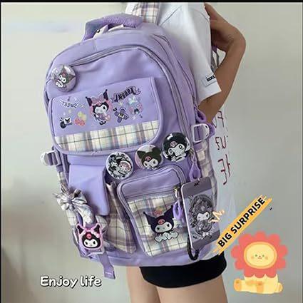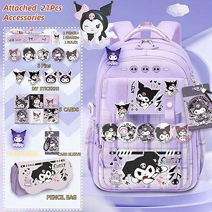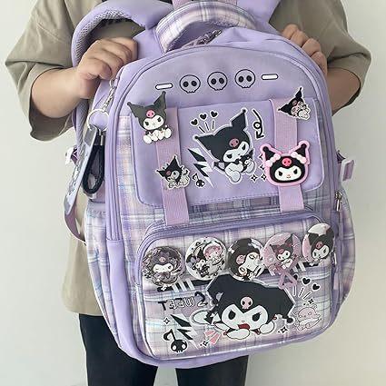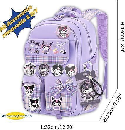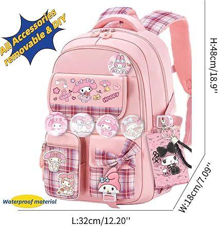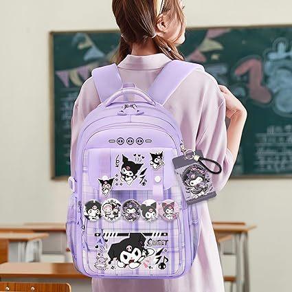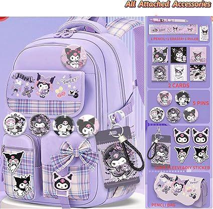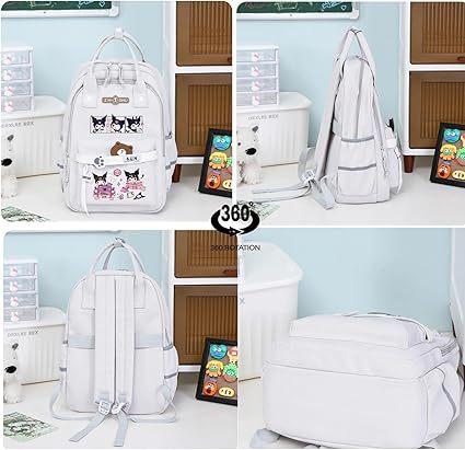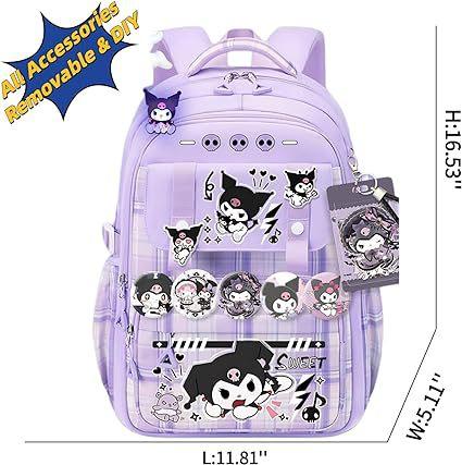 Mochila Kawaii con 18 Piezas Accesorios Animación Dibujos Animados Antirrobo Viaje Estética Nuevo Semestre Bolsa de Regalo con Lindo