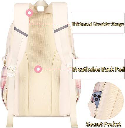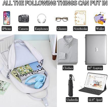 【Descripción del Producto】Esta mochila estética mide 12.20" x 7.09" x 18.9" (aproximadamente 30.9 cm x 19.9 cm x 48.9 cm) En el interior hay un compartimento principal con cremallera, un compartimento separado para computadora, un bolsillo frontal con cremallera, dos bolsillos laterales con cordón y un bolsillo antirrobo con cremallera. Los bolsillos laterales pueden guardar botellas de agua y paraguas. Los compartimentos espaciosos y los múltiples bolsillos mantienen tus artículos organizados y más fáciles de encontrar
