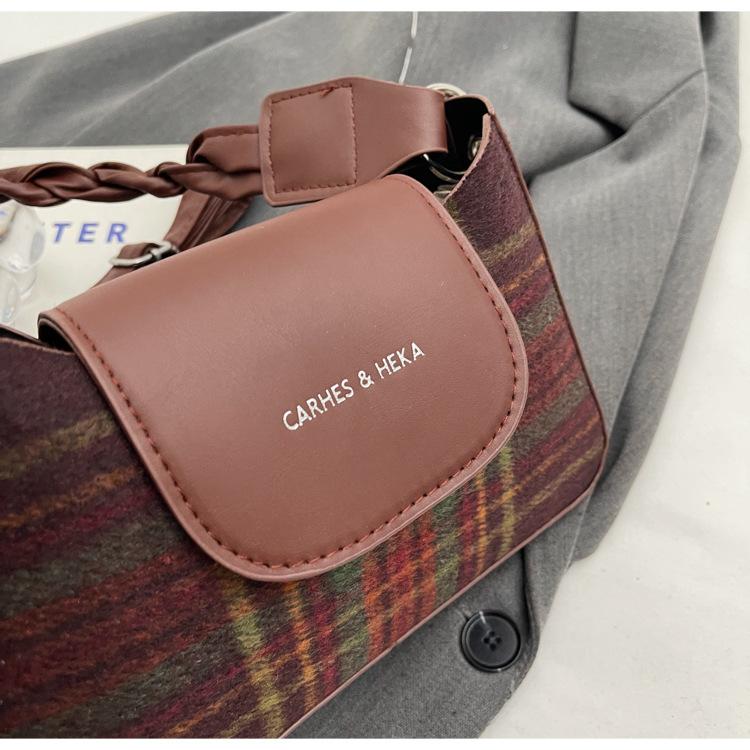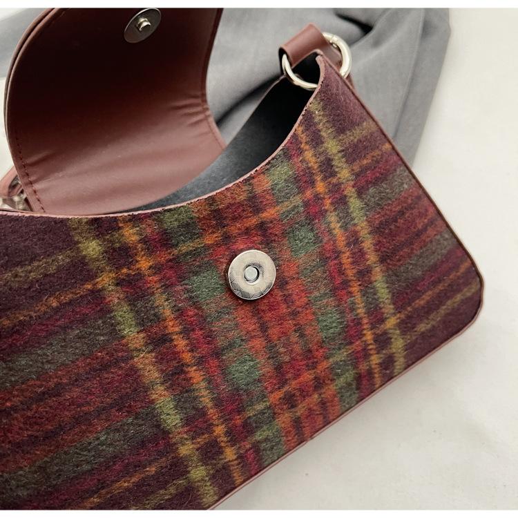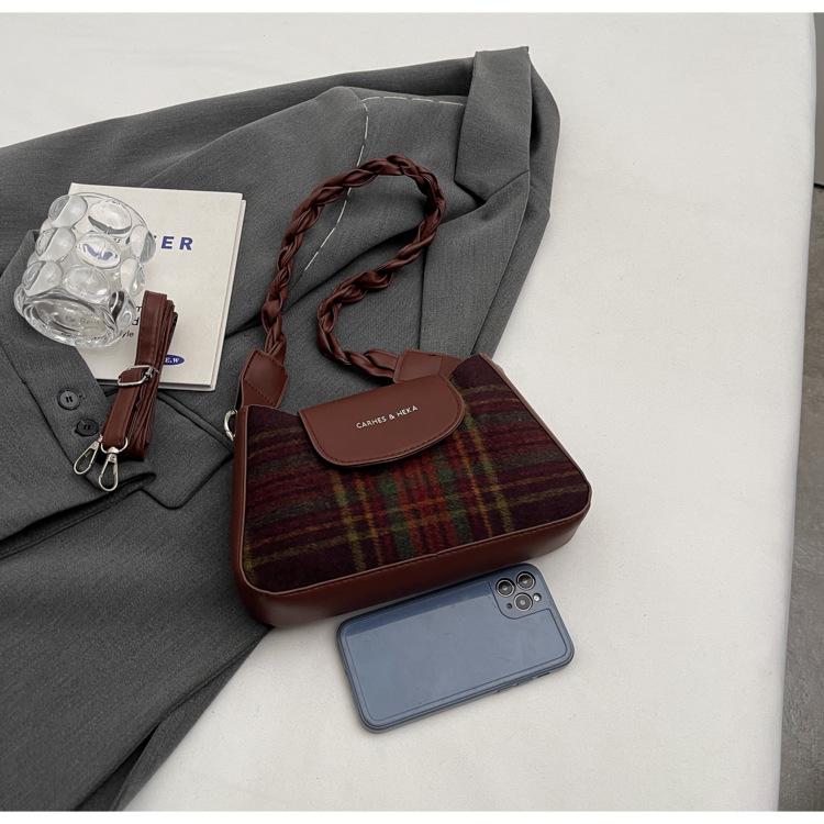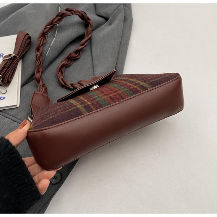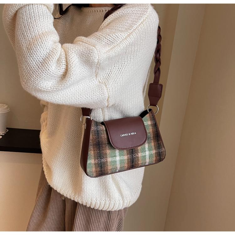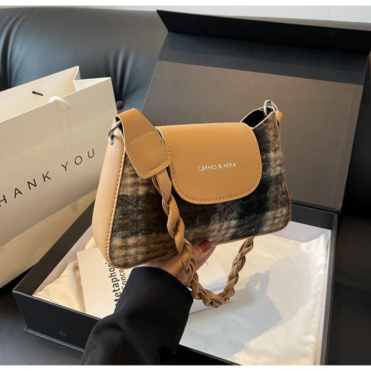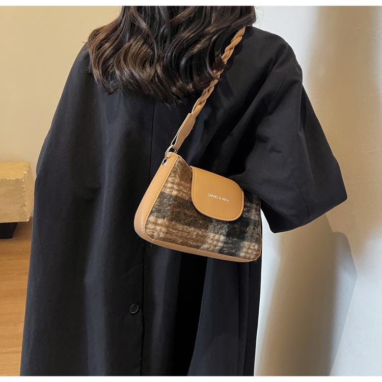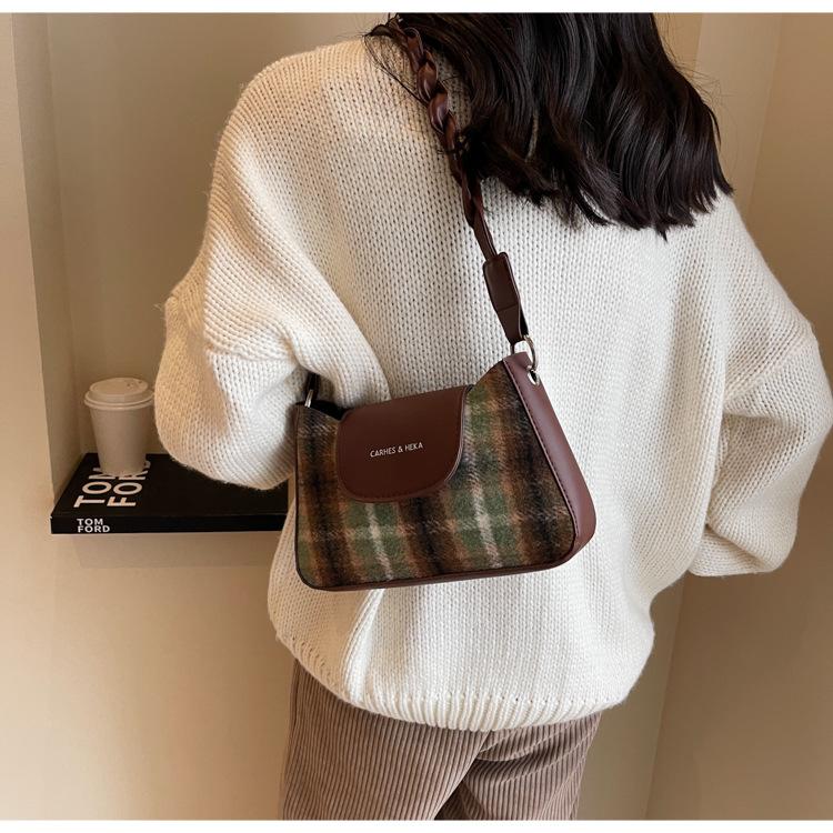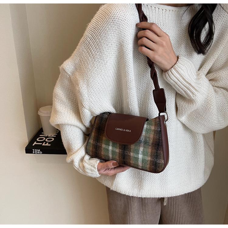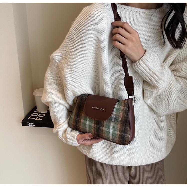 Nueva moda transfronteriza bolso bandolera de cuadros de color contrastante combinable para mujer bolso nicho de celebridad de Internet de lana simple para hombro o axila