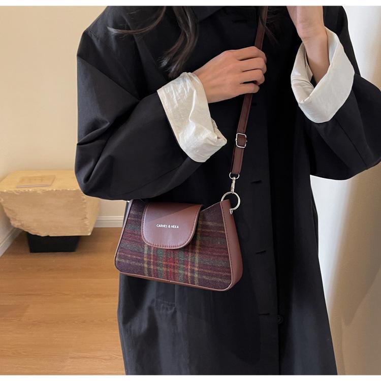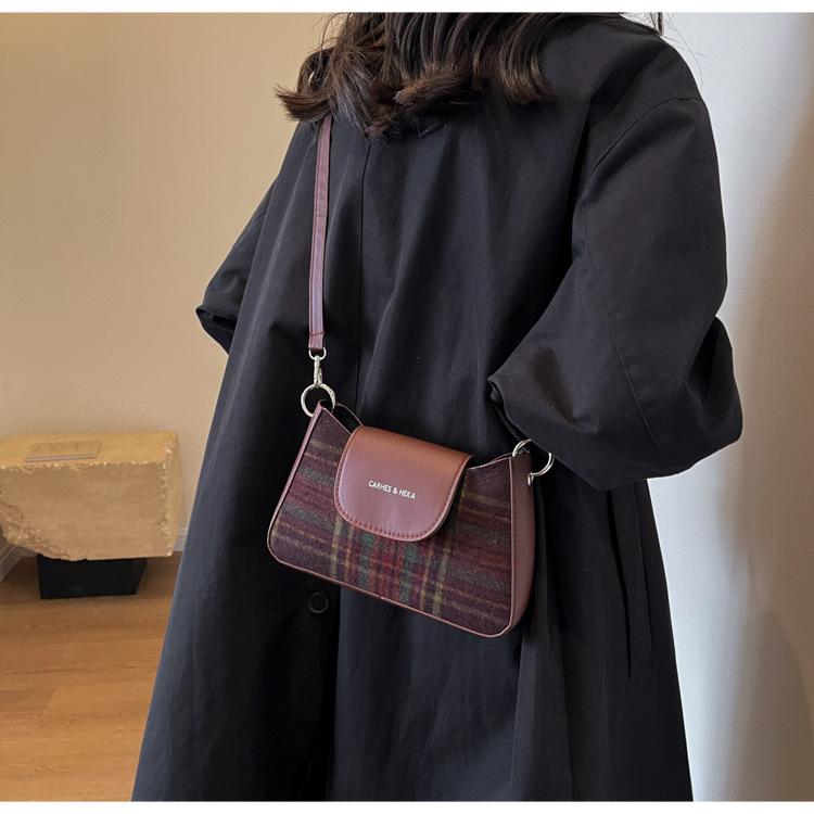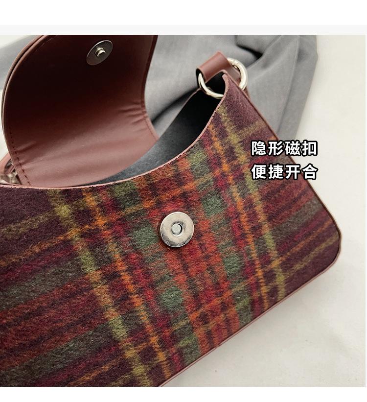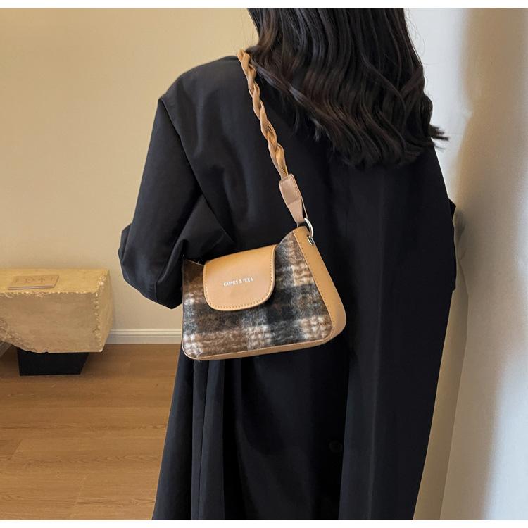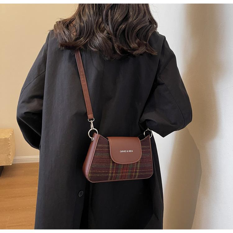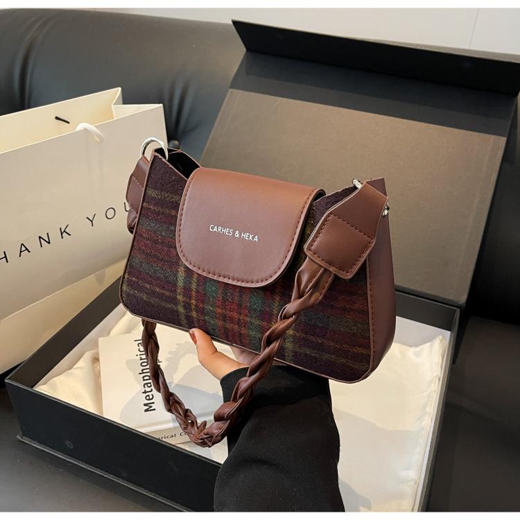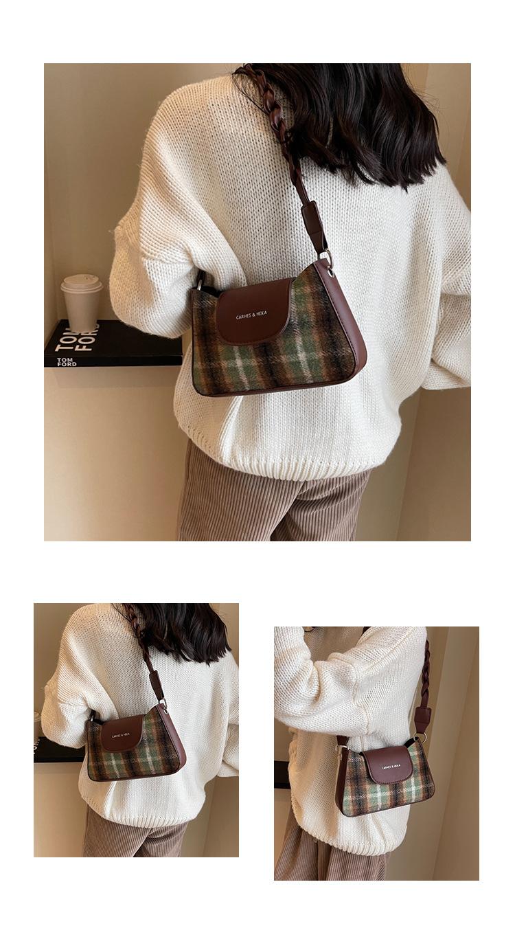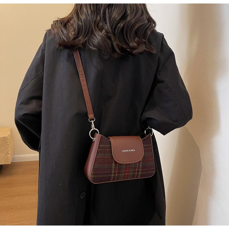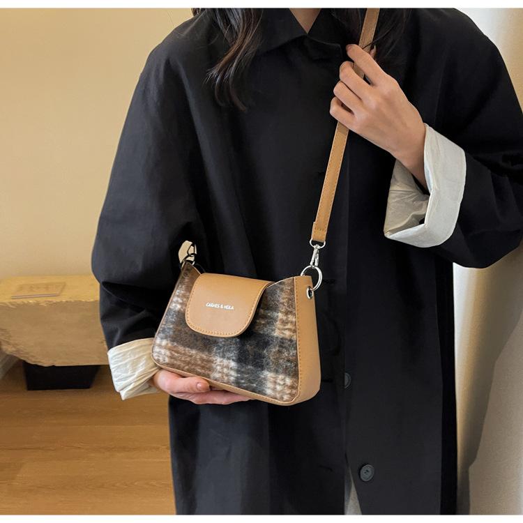 Nueva moda transfronteriza bolso bandolera de cuadros de color contrastante combinable para mujer bolso nicho de celebridad de Internet de lana simple para hombro o axila