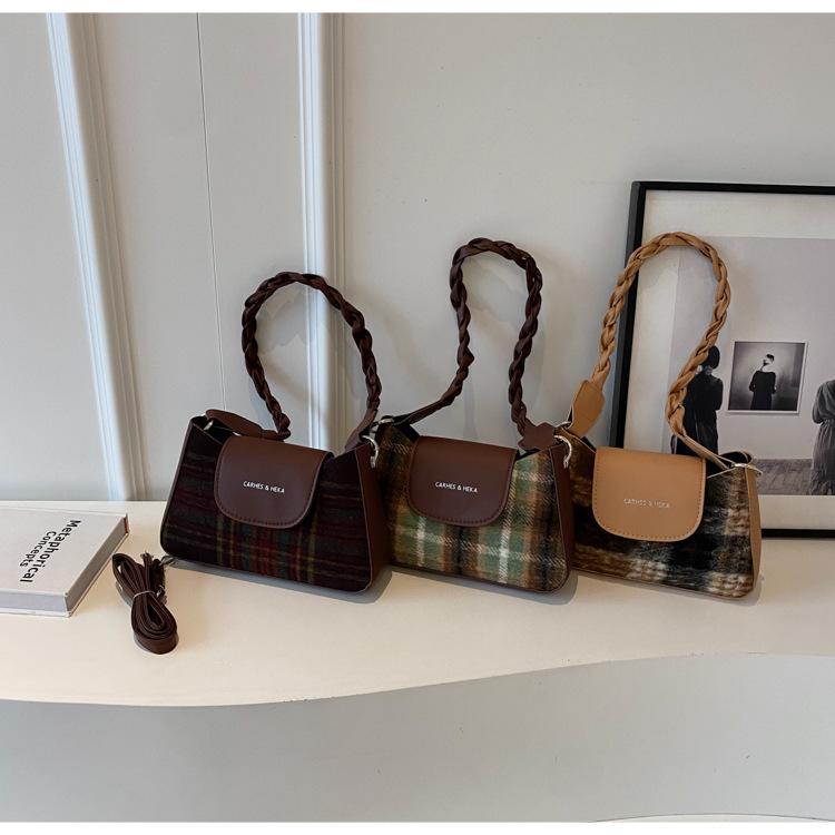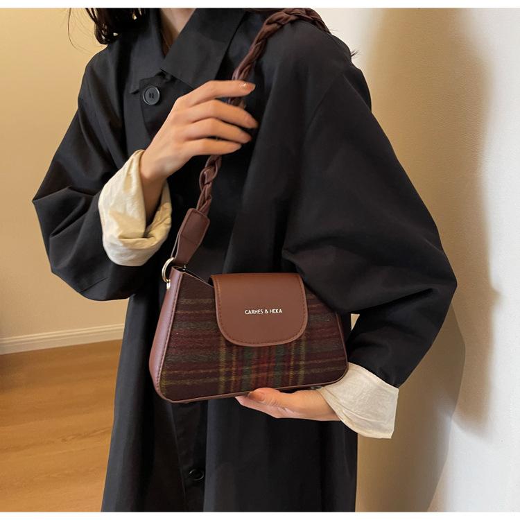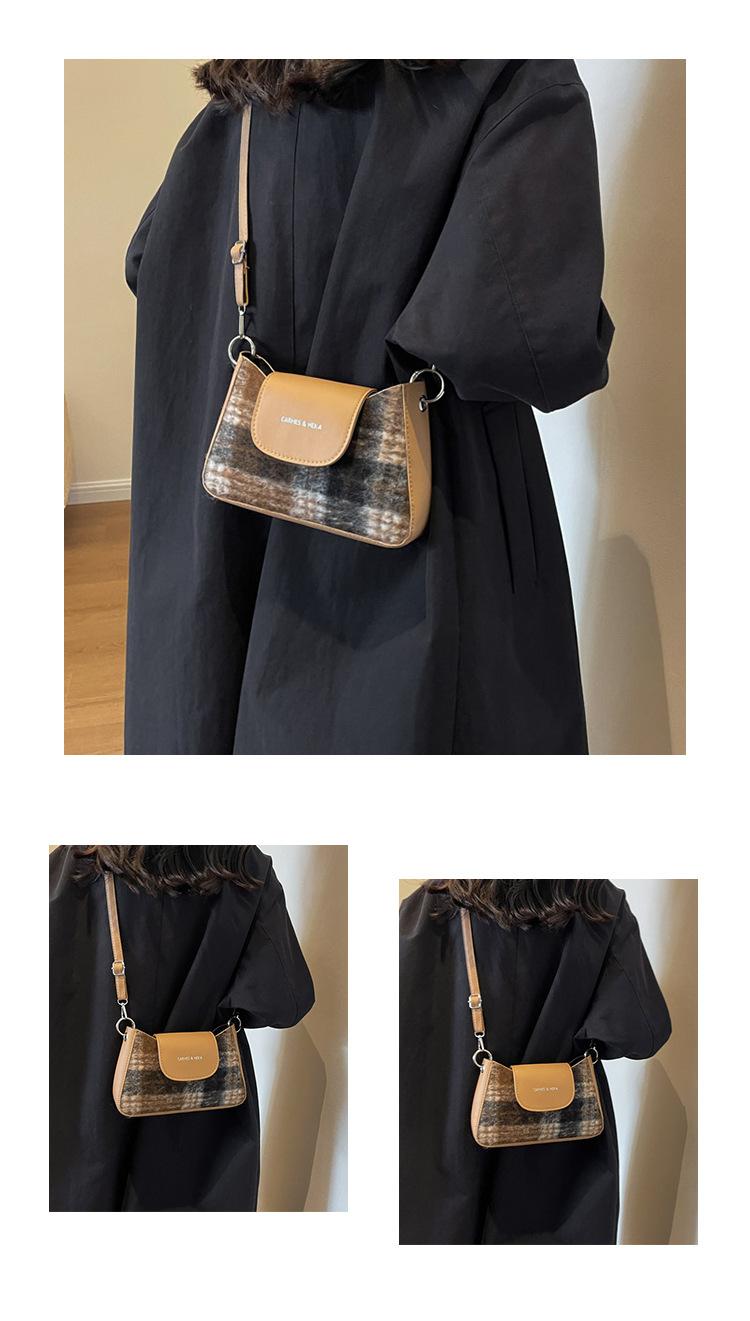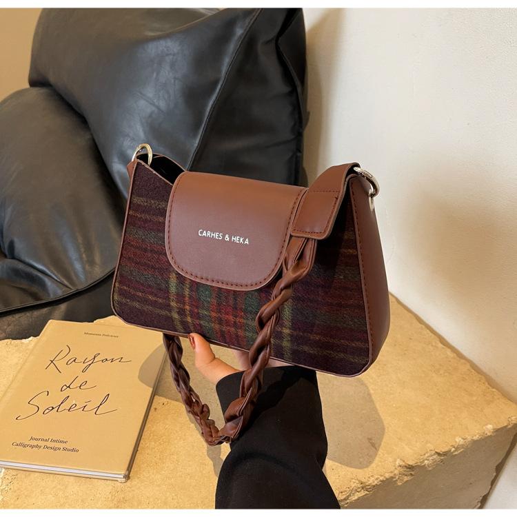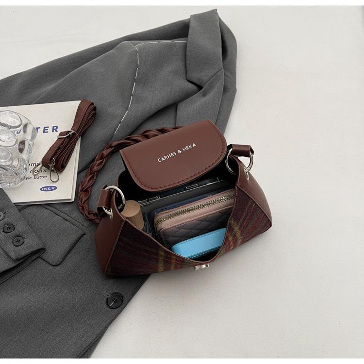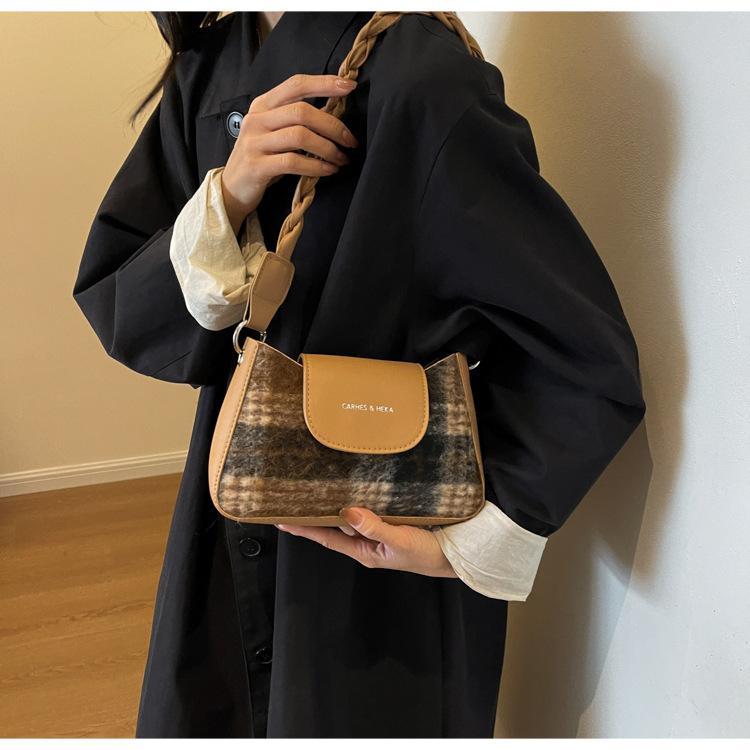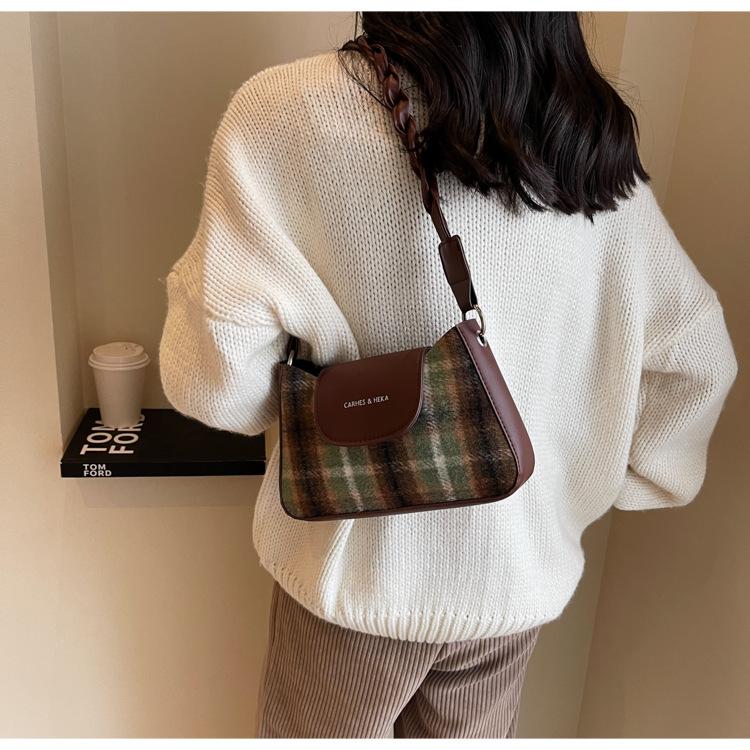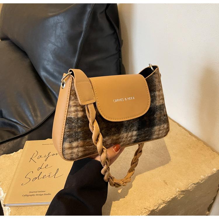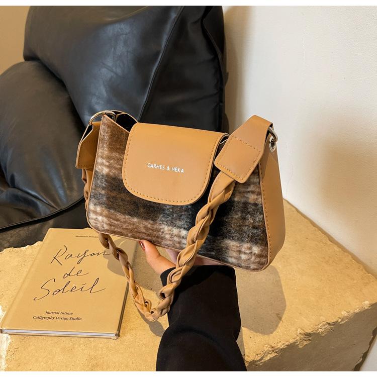 Nueva moda transfronteriza bolso bandolera de cuadros de color contrastante combinable para mujer bolso nicho de celebridad de Internet de lana simple para hombro o axila