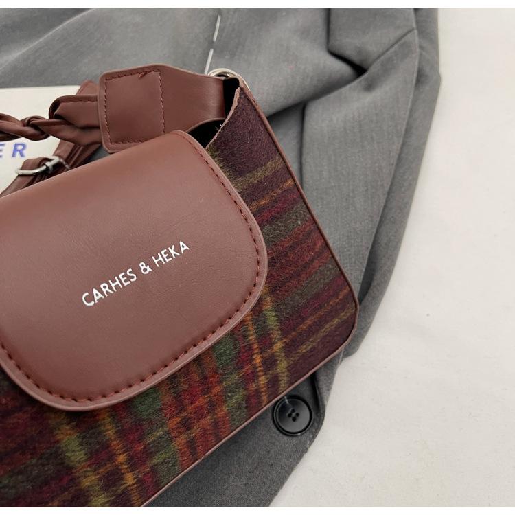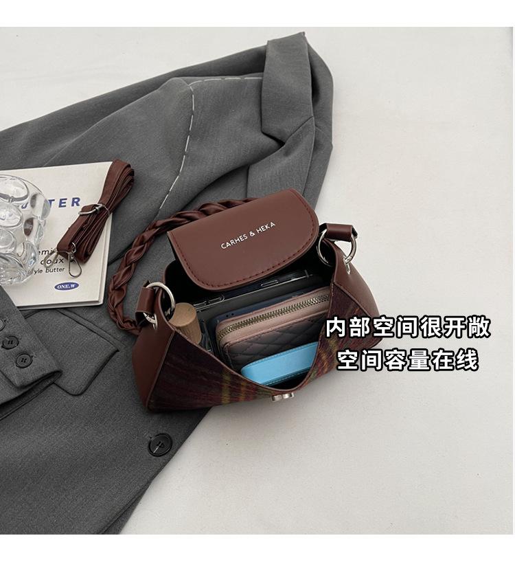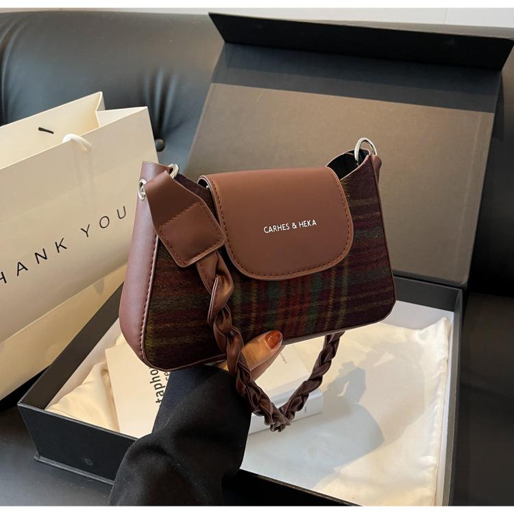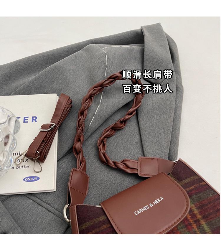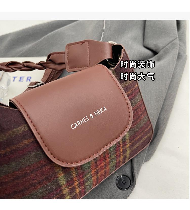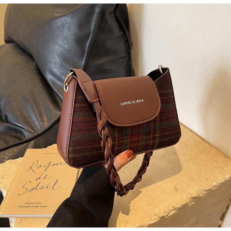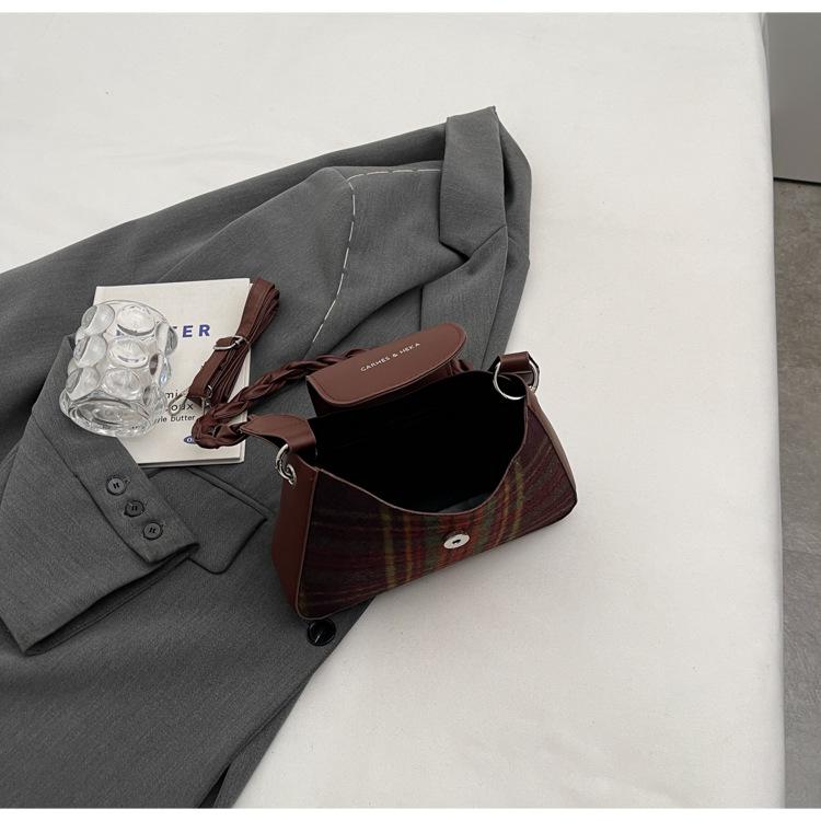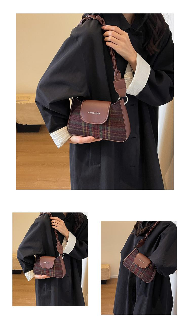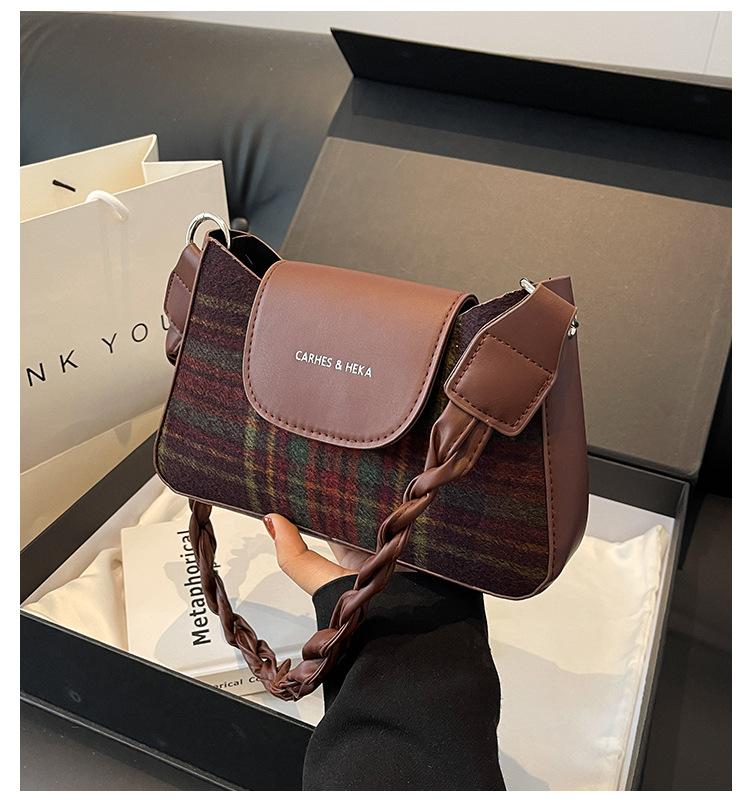 Nueva moda transfronteriza bolso bandolera de cuadros de color contrastante combinable para mujer bolso nicho de celebridad de Internet de lana simple para hombro o axila