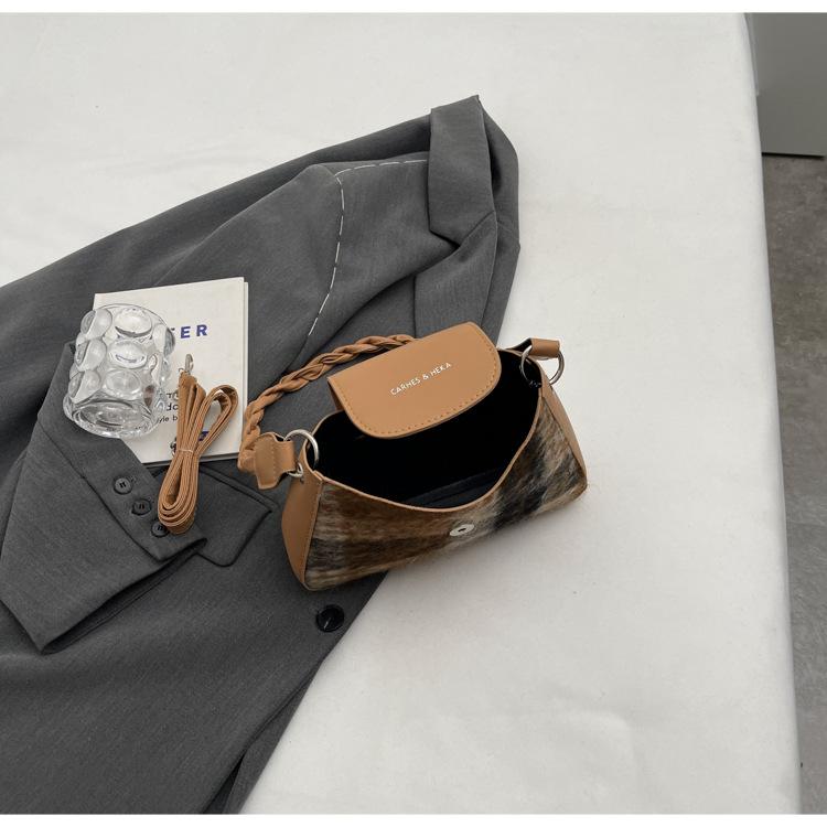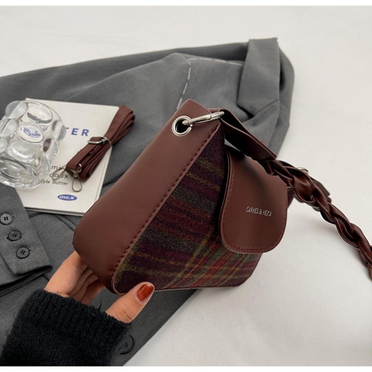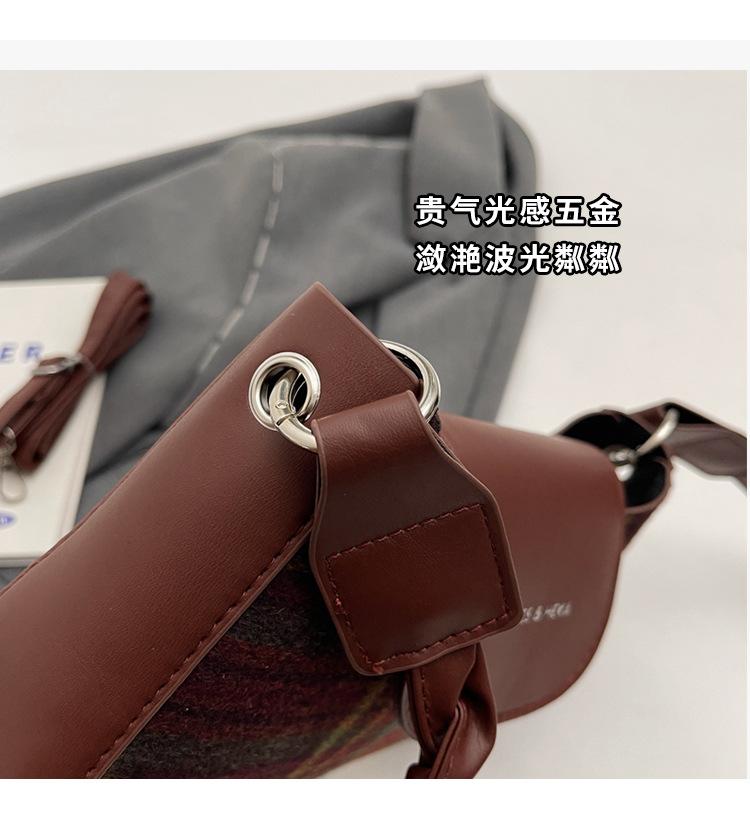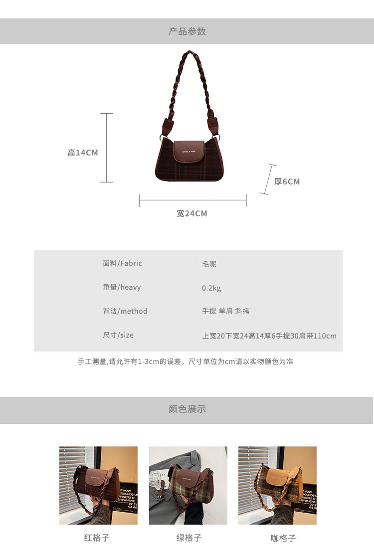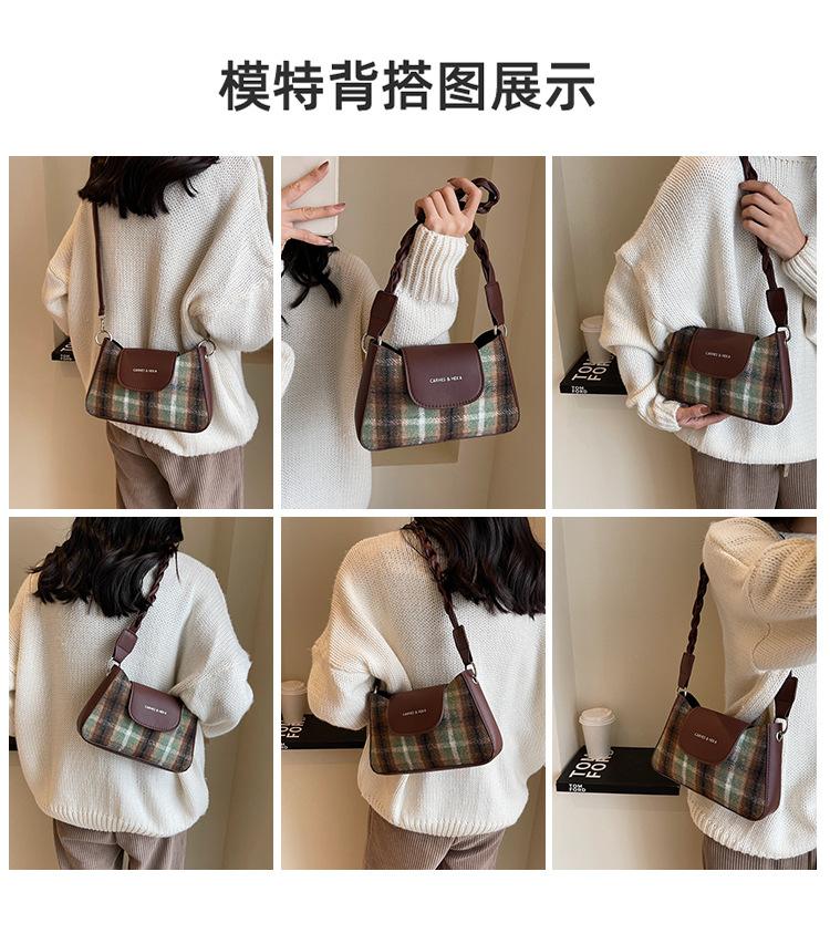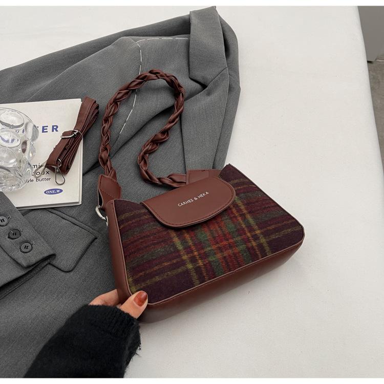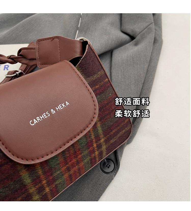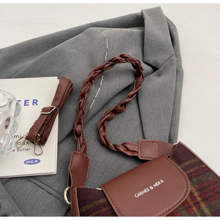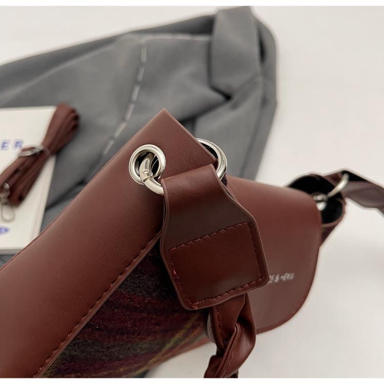 Nueva moda transfronteriza bolso bandolera de cuadros de color contrastante combinable para mujer bolso nicho de celebridad de Internet de lana simple para hombro o axila