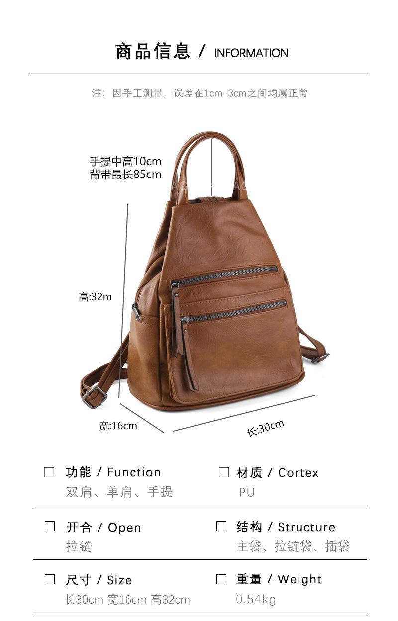 Compra Mochila retro europea y americana de piel de vaca, clásica, de comercio exterior, de gran capacidad, informal, para exteriores, con cremallera, para mujer al por mayor en Joom.pro