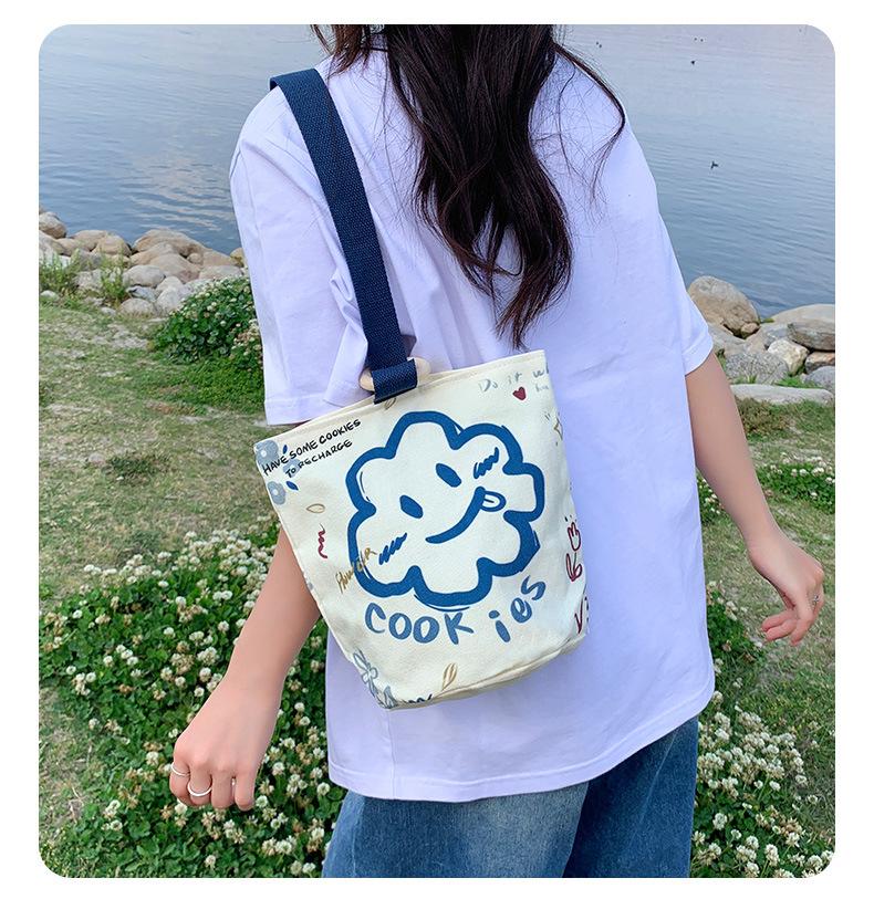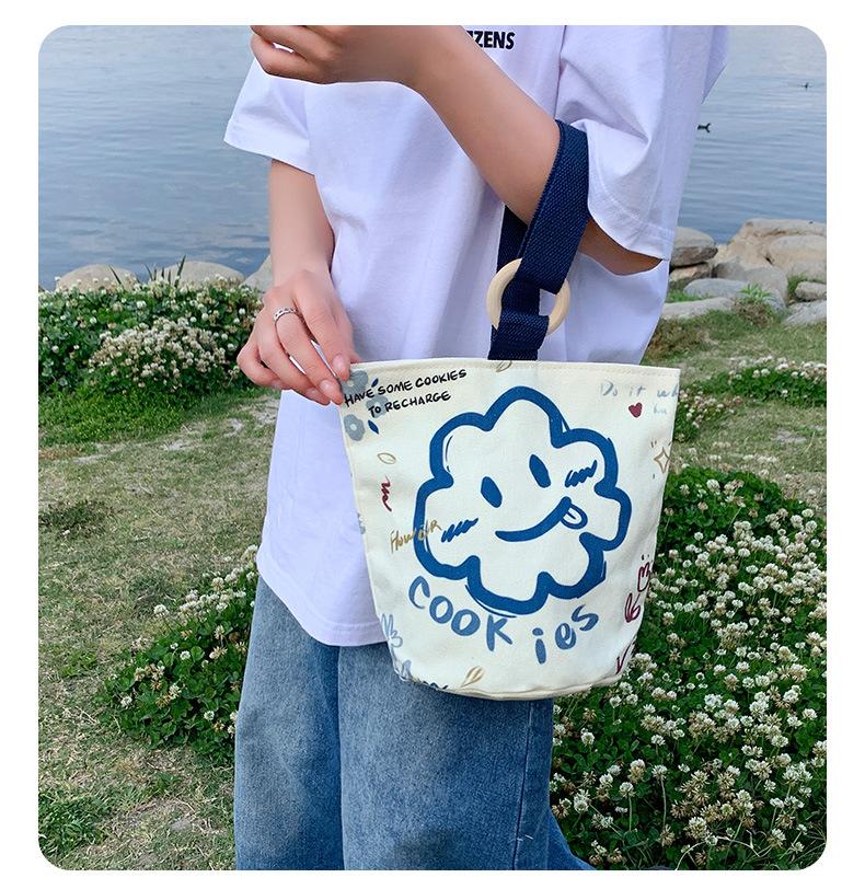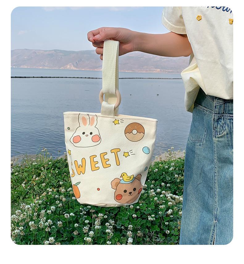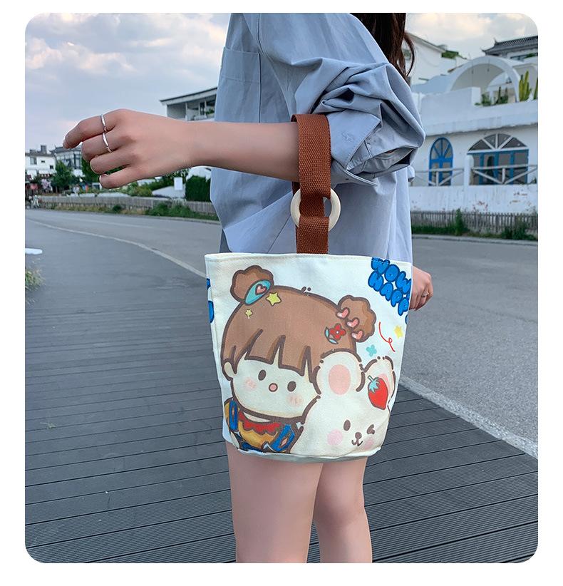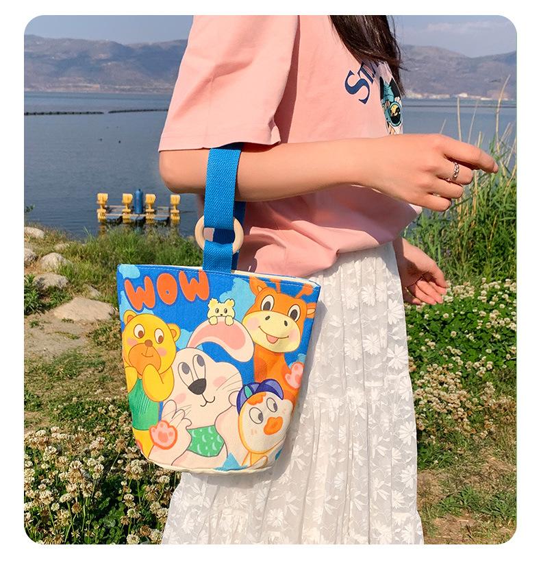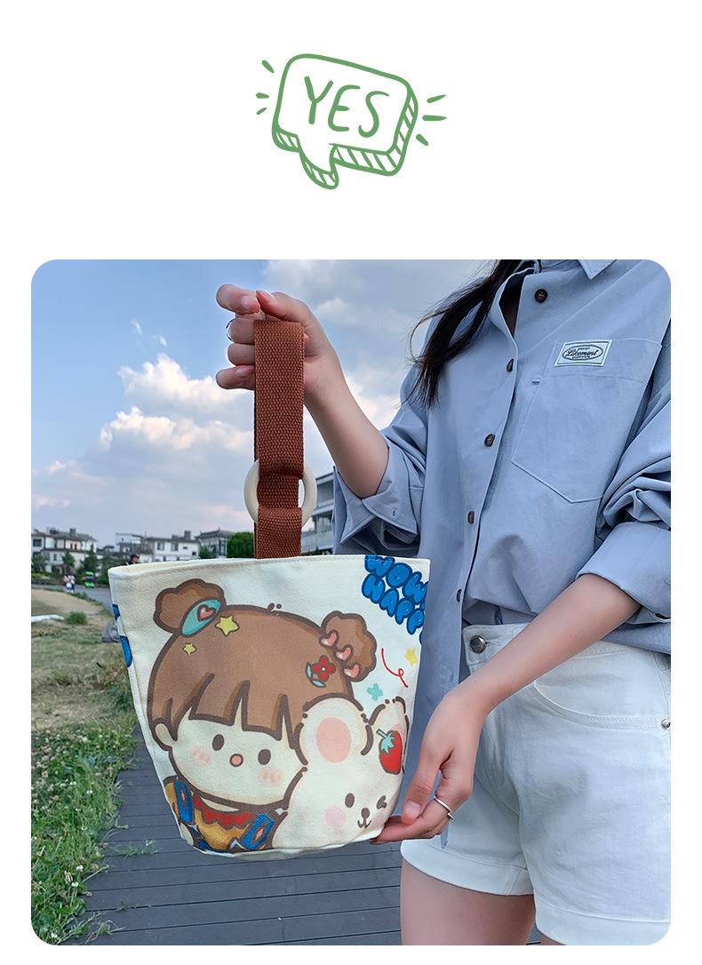 Bolsa de Lona de Dibujos Animados para Mujer, Bolso Tipo Cubo de Gran Capacidad, Bolso de Mano 2025 Nuevo, Bolso de Hombro para Trabajadora de Oficina, Bolso de Mano al Por Mayor