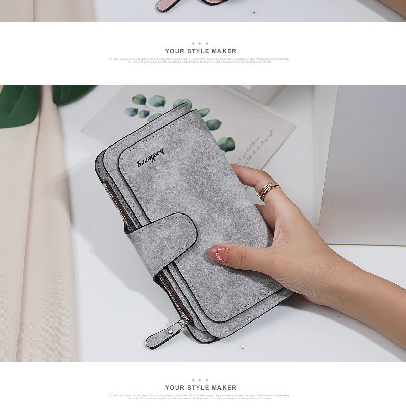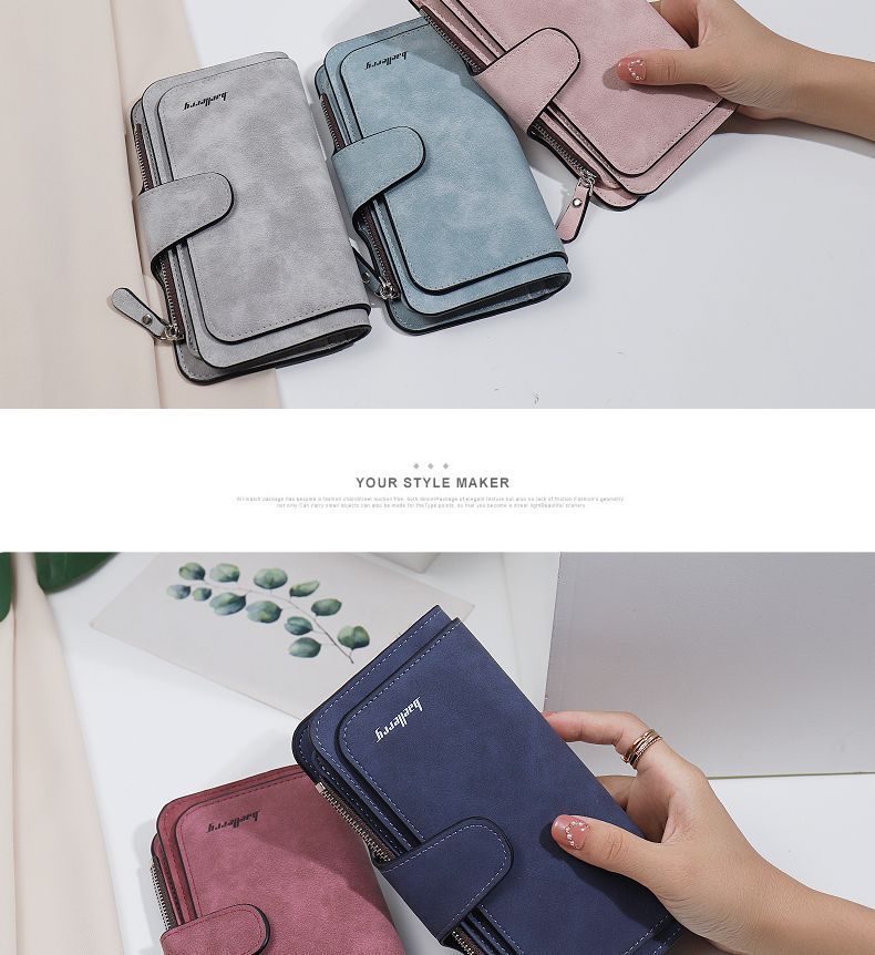 Compra Cartera de Mujer Estilo Coreano Explosiva Monedero Esmerilado Clutch de Cuero PU Multiusos Largo Moda Gran Capacidad Tarjetero al por mayor en Joom.pro