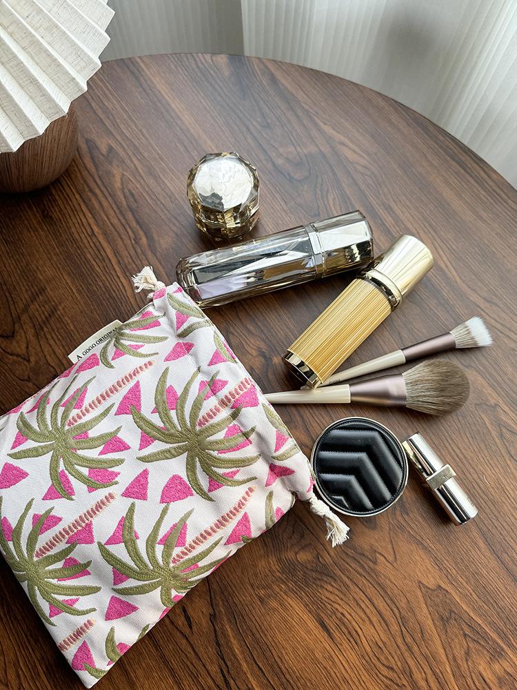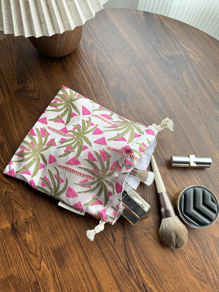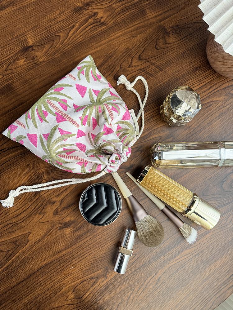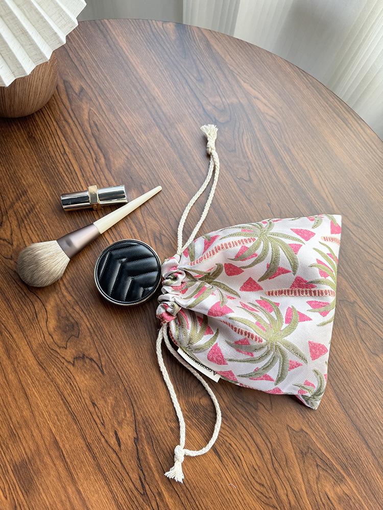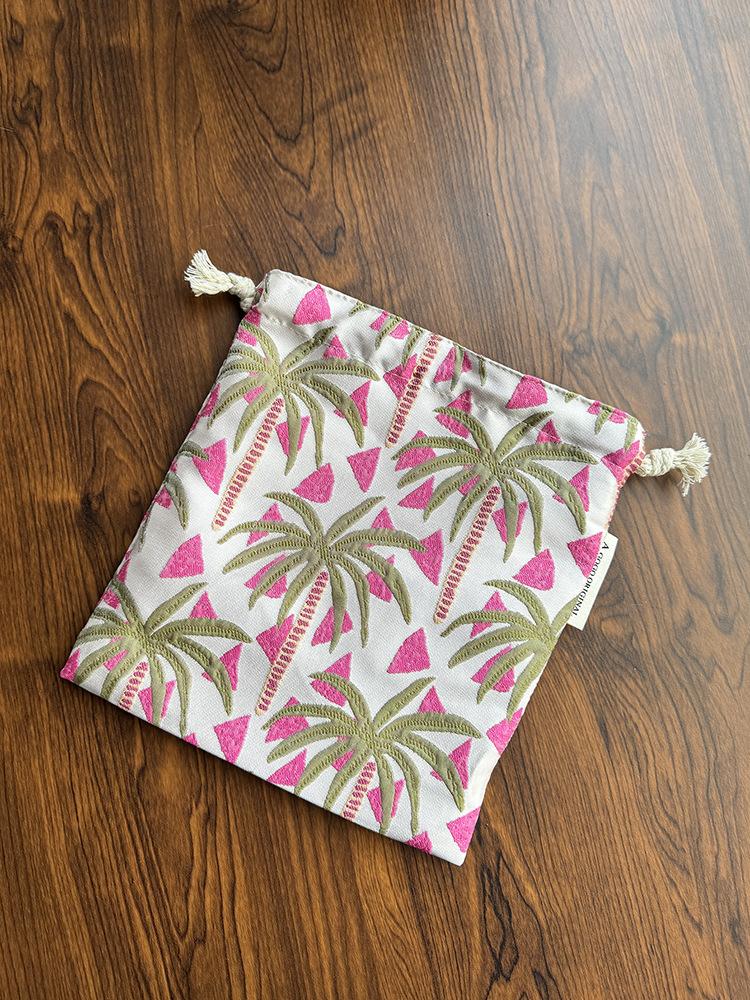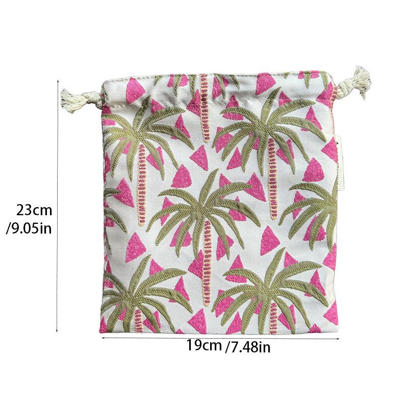 A drawstring bag. Coconut Tree, A drawstring bag. Flowers