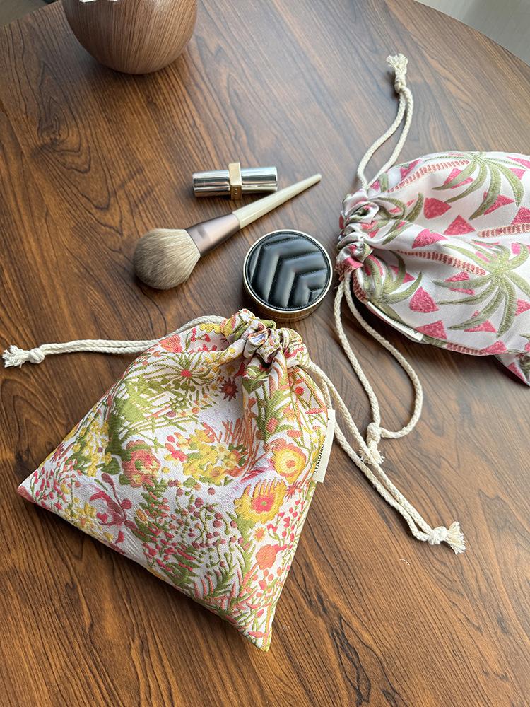 Bolsa con Cordón Estilo Fresco Pequeño Bolsa de Cosméticos Portátil Bolsa Cuadrada Pequeña Bolsa de Lavado Forro Bolso de Mano Bolsa Interior Bolsa de Tela a Prueba de Polvo