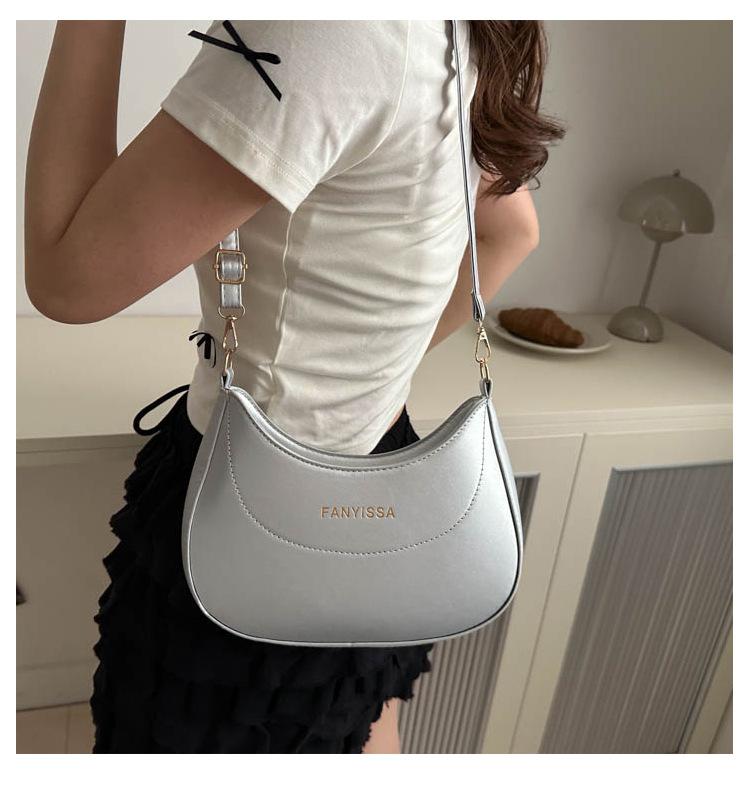 2025 Nueva Bolsa Casual Media Luna Tipo Dumpling Temperamento Diseño Nicho Francés Portátil de Hombro Único Media Luna Bajo el Brazo Bolsa Pequeña