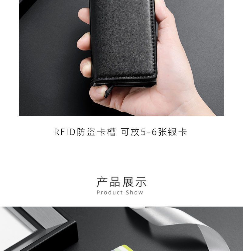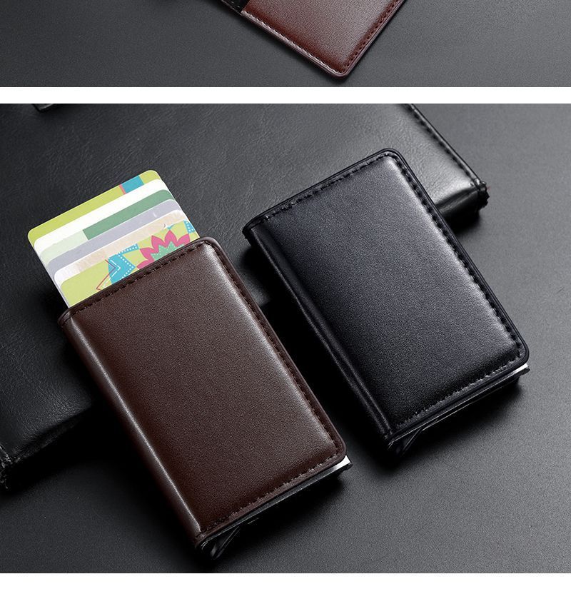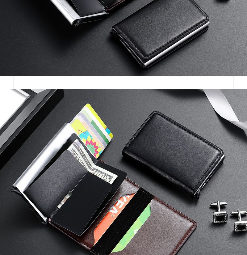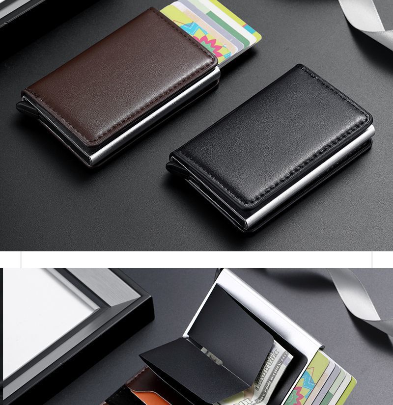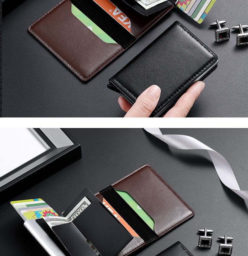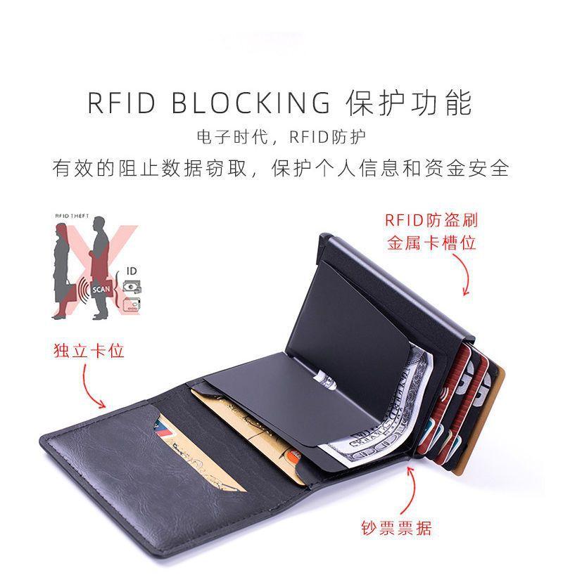Tarjetero para hombre, de aleación de aluminio, antirrobo, RFID, automático, portátil, 2 en 1