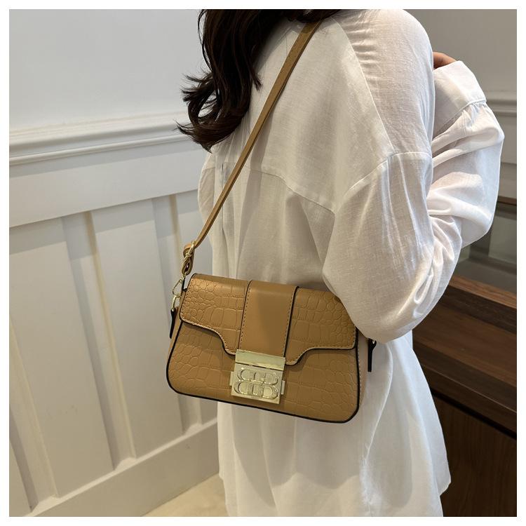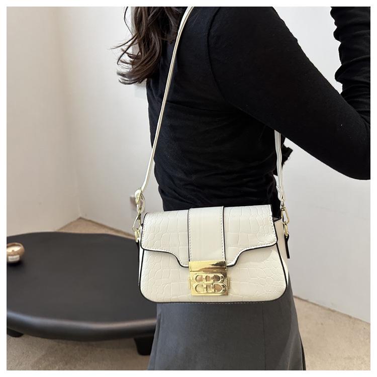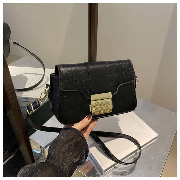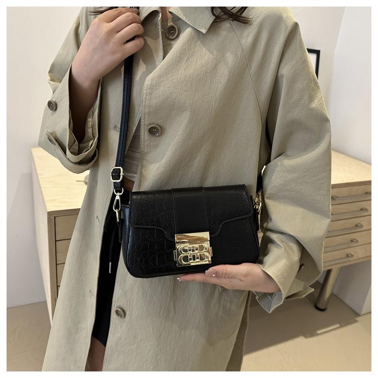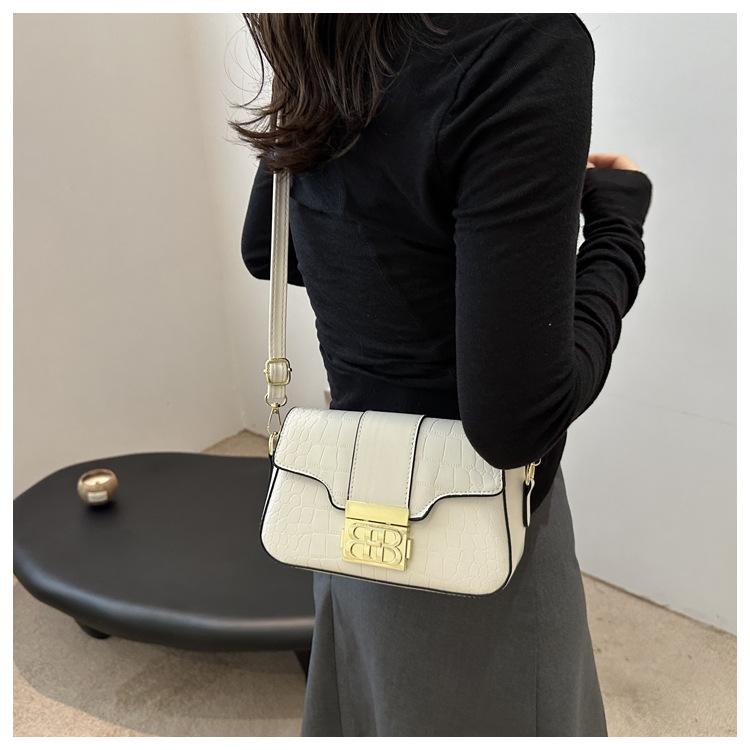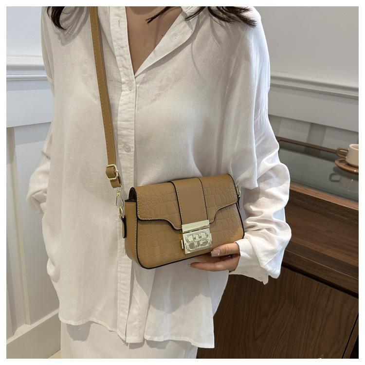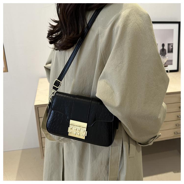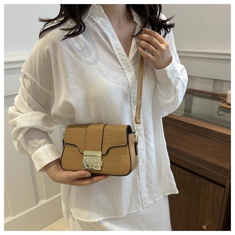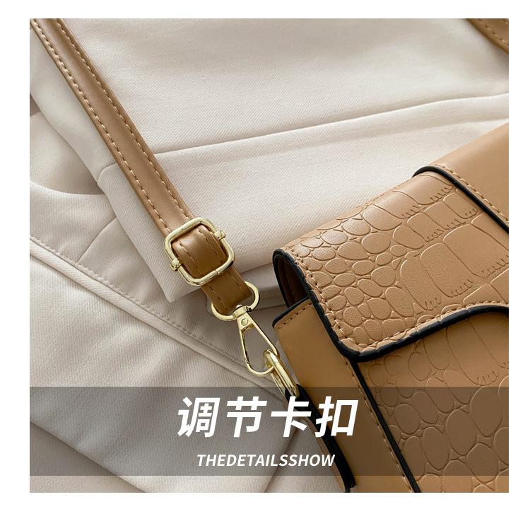 Bolso Cuadrado Pequeño con Cierre de Contraste con Patrón de Cocodrilo para Mujer 2024 Otoño Nuevo Bolso de Hombro Bolso de Hombro Nicho Bolso Cruzado de Moda