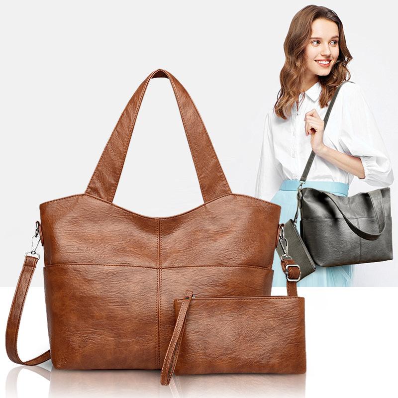 Bolso de Mujer Transfronterizo 2024 Nuevo Bolso Retro Europeo y Americano de Gran Capacidad para Madre de Mediana Edad Cuero Suave Hombro Bandolera Moderno