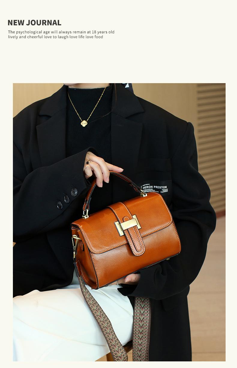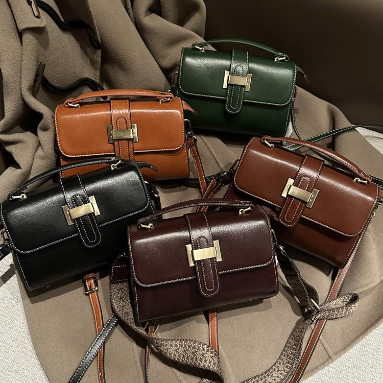 Bolso grande de piel de vaca con cera de aceite para mujer, nuevo estilo 2024, moderno y elegante, bolso de hombro tipo mensajero de piel auténtica para mujer. |
