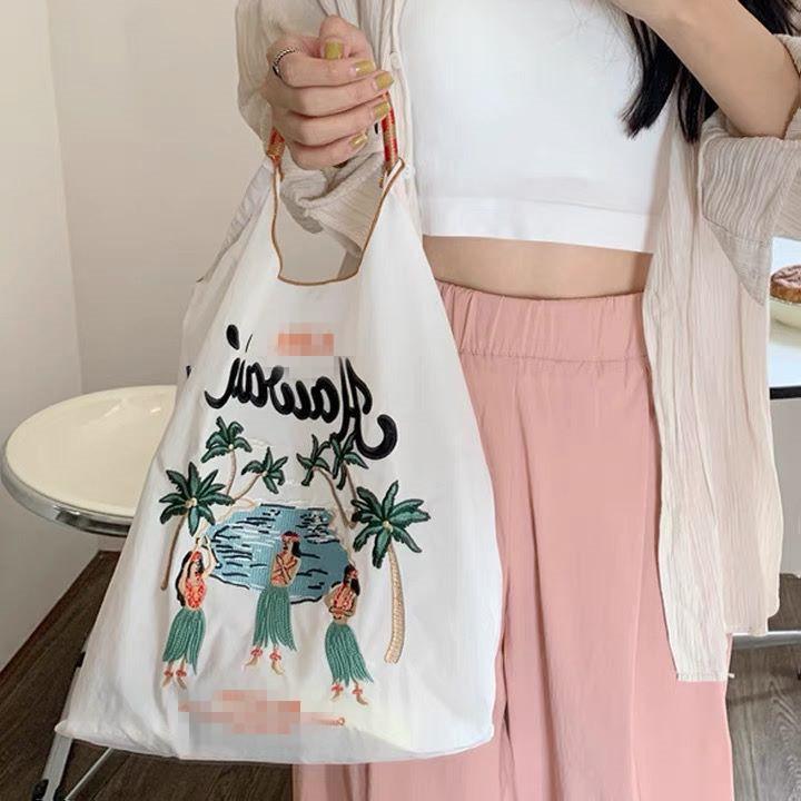 Nueva Bolsa de Lona para Compras Bordada para Mujer Bolso de Mano de Gran Capacidad de Nailon Cruzado Plegable Portátil Bolso de Hombro