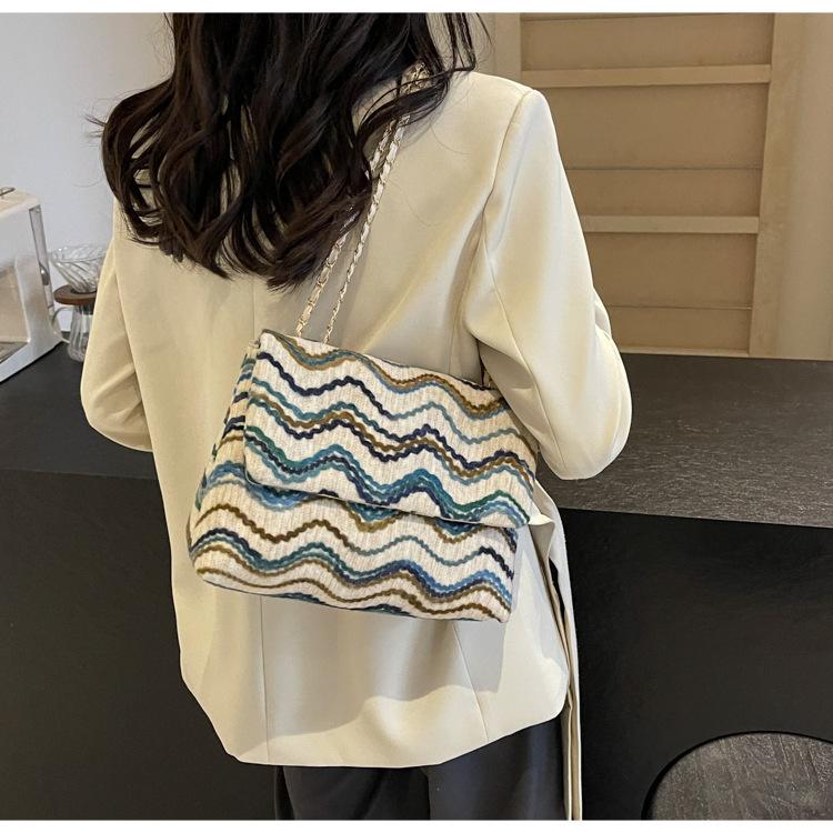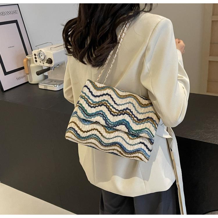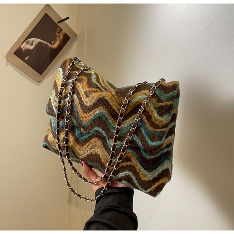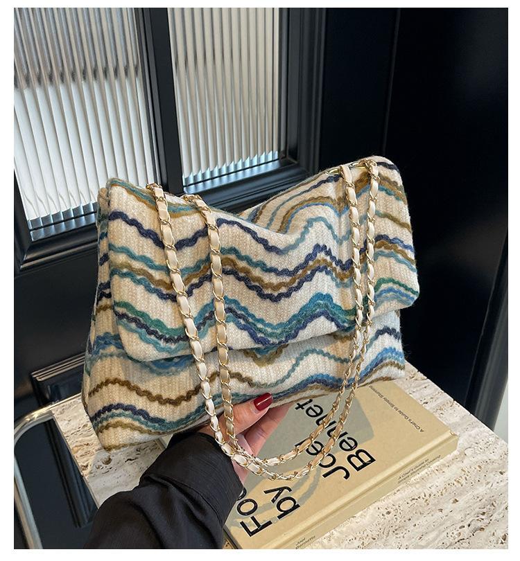 Bolso de Tela a Cuadros Estilo Hong Kong Primavera 2024 Gran Capacidad Nuevo Moderno Sencillo Casual Cadena Bandolera Hombro Tote Bolso de Mujer