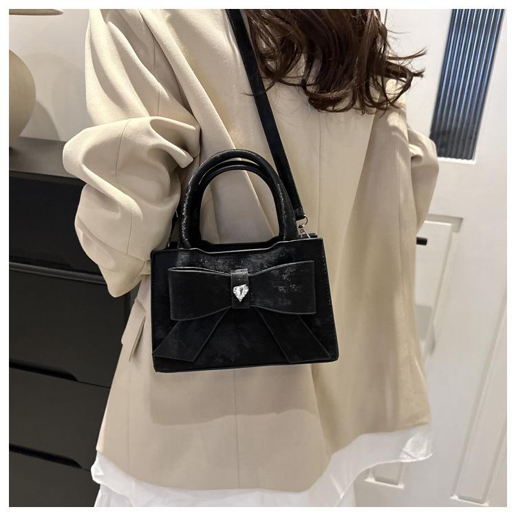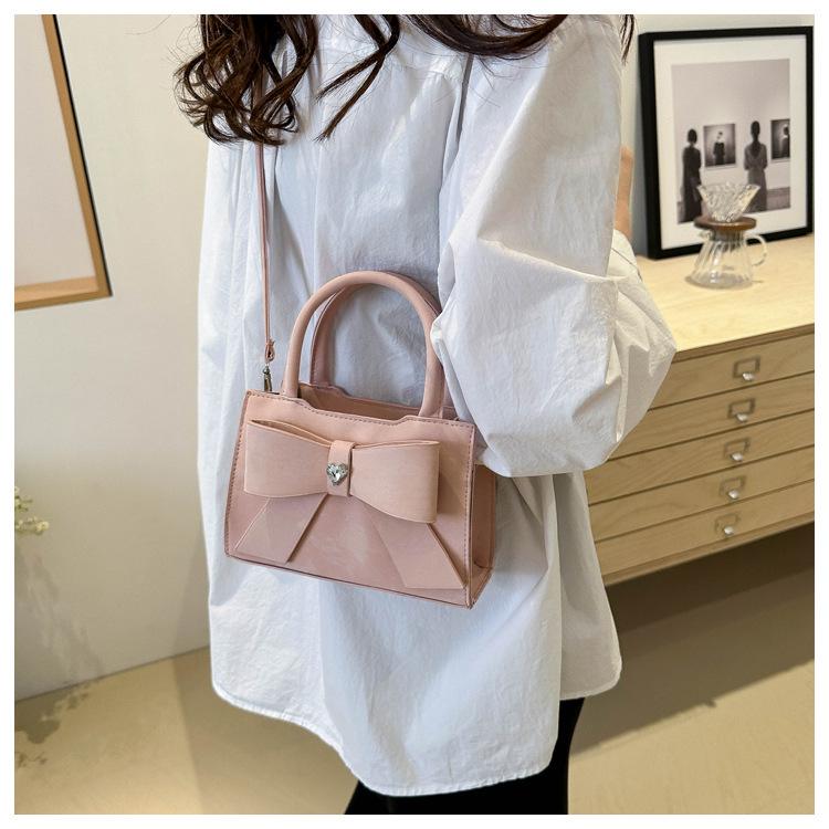 Bolso de viaje estilo coreano para mujer, nueva moda de primavera 2024, bolso portátil para mujer, bandolera con lazo, bolso cuadrado pequeño