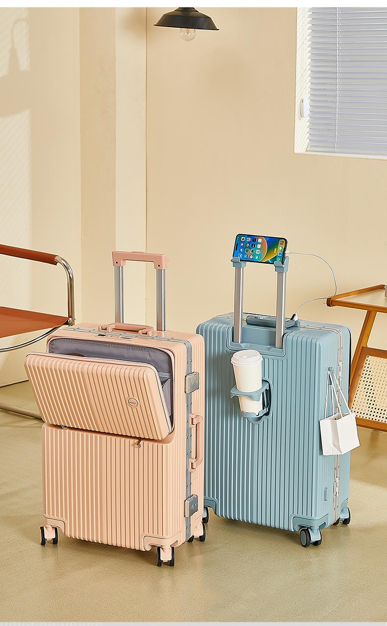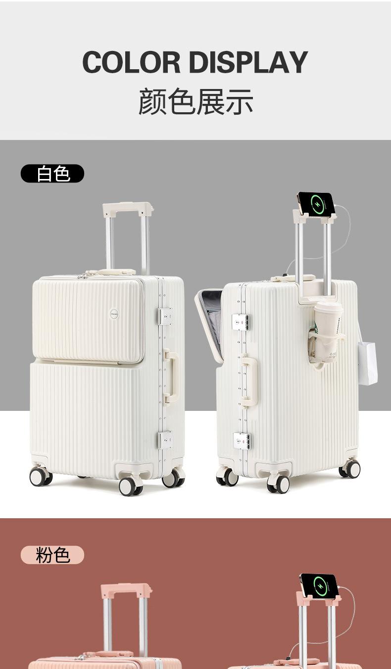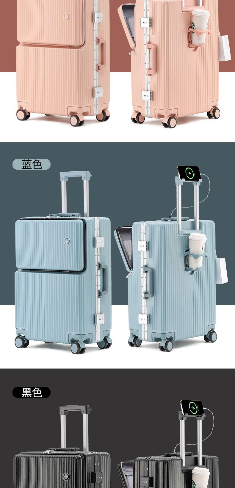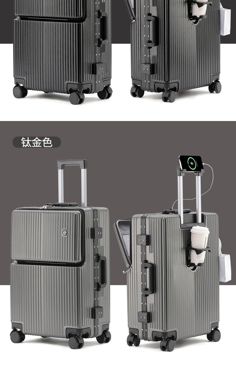Maleta con ruedas de negocios con marco de aluminio multifuncional, maleta con apertura frontal, maleta de embarque de 20 pulgadas para hombre, caja con contraseña, maleta para mujer de 24 pulgadas