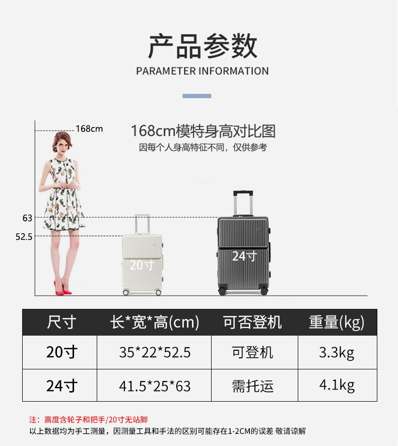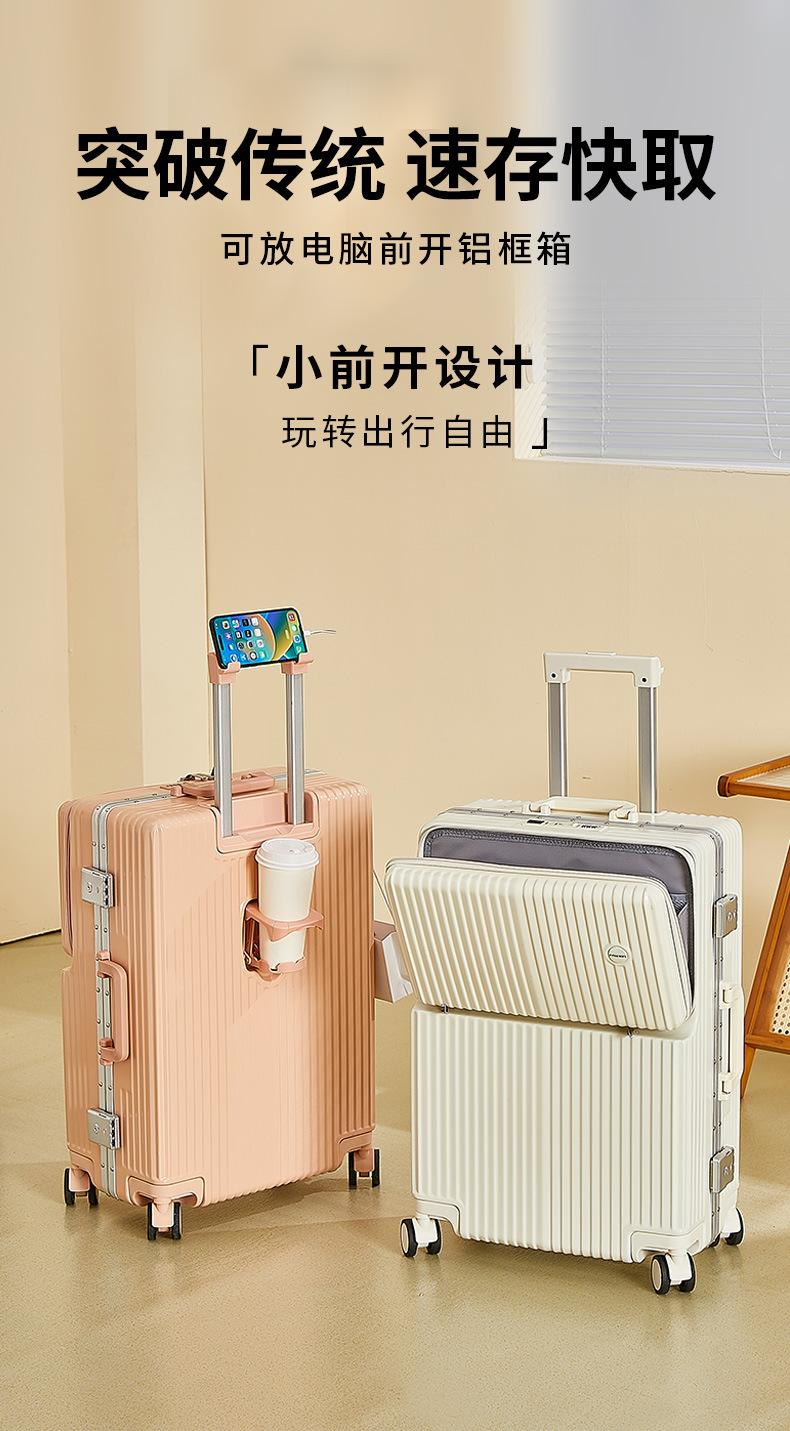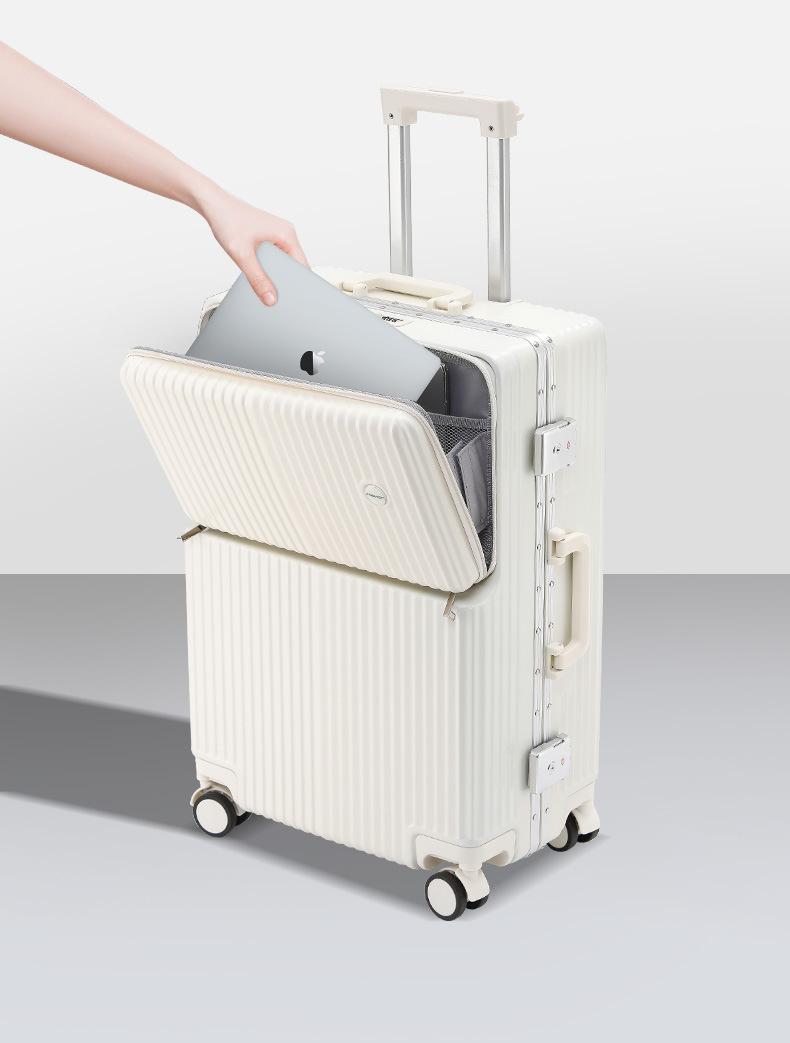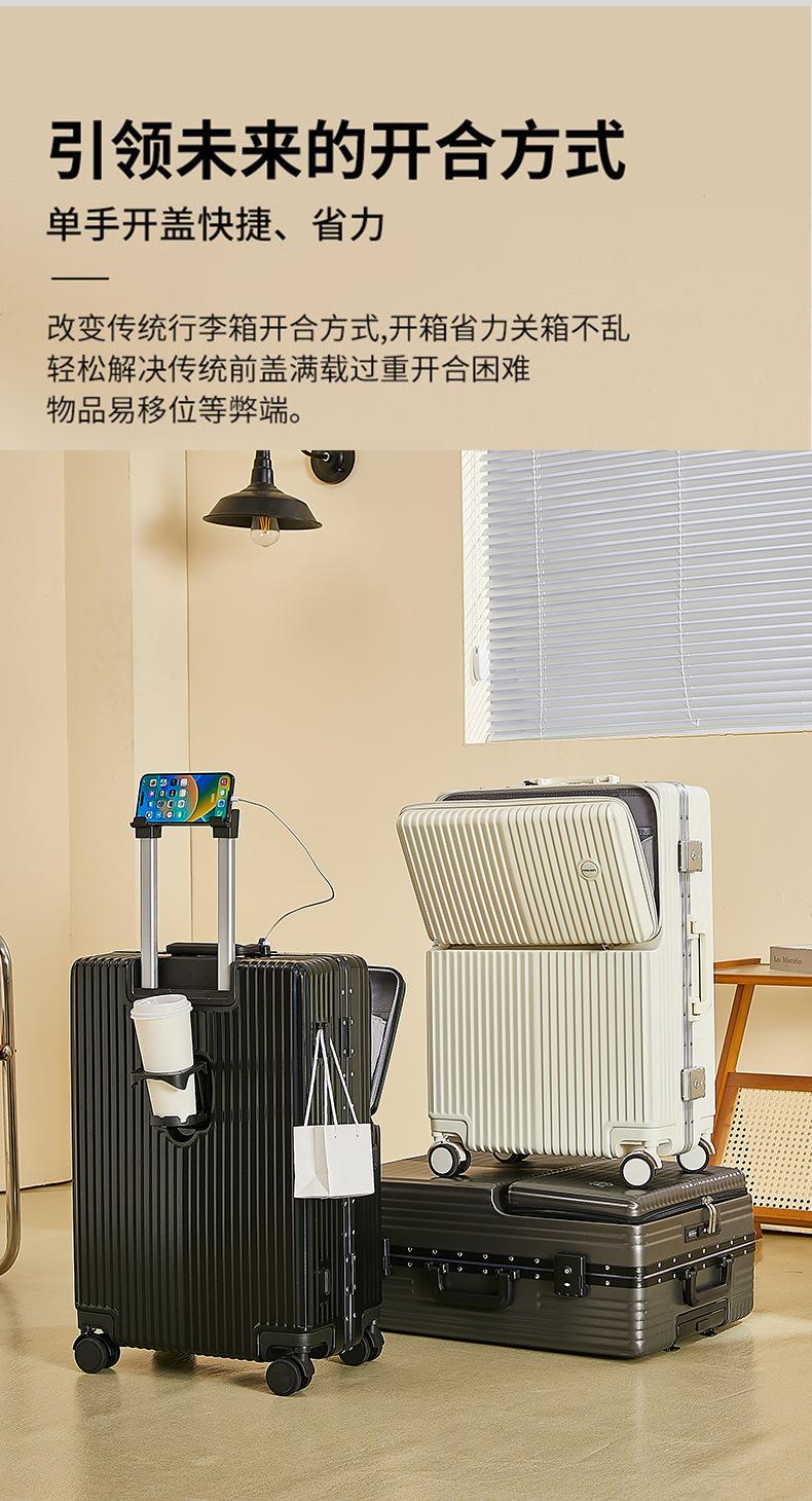 Maleta con ruedas de negocios con marco de aluminio multifuncional, maleta con apertura frontal, maleta de embarque de 20 pulgadas para hombre, caja con contraseña, maleta para mujer de 24 pulgadas