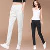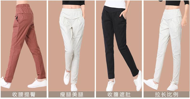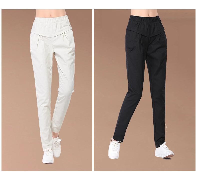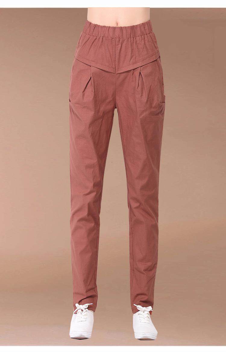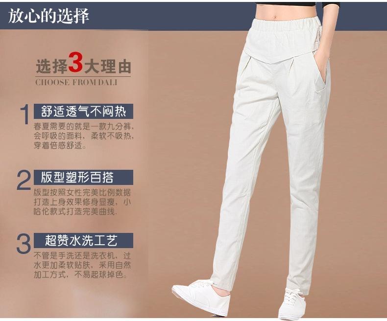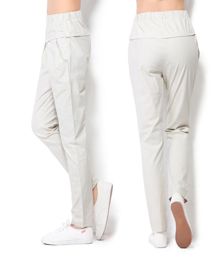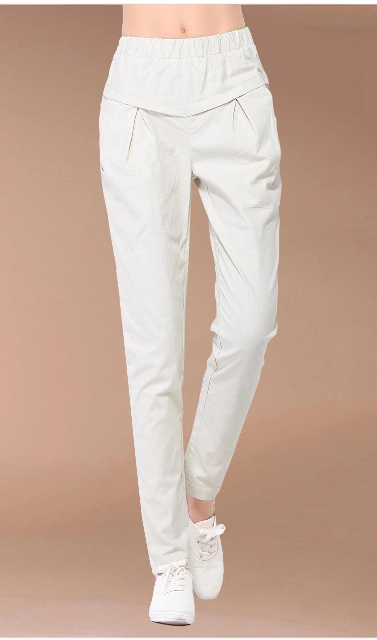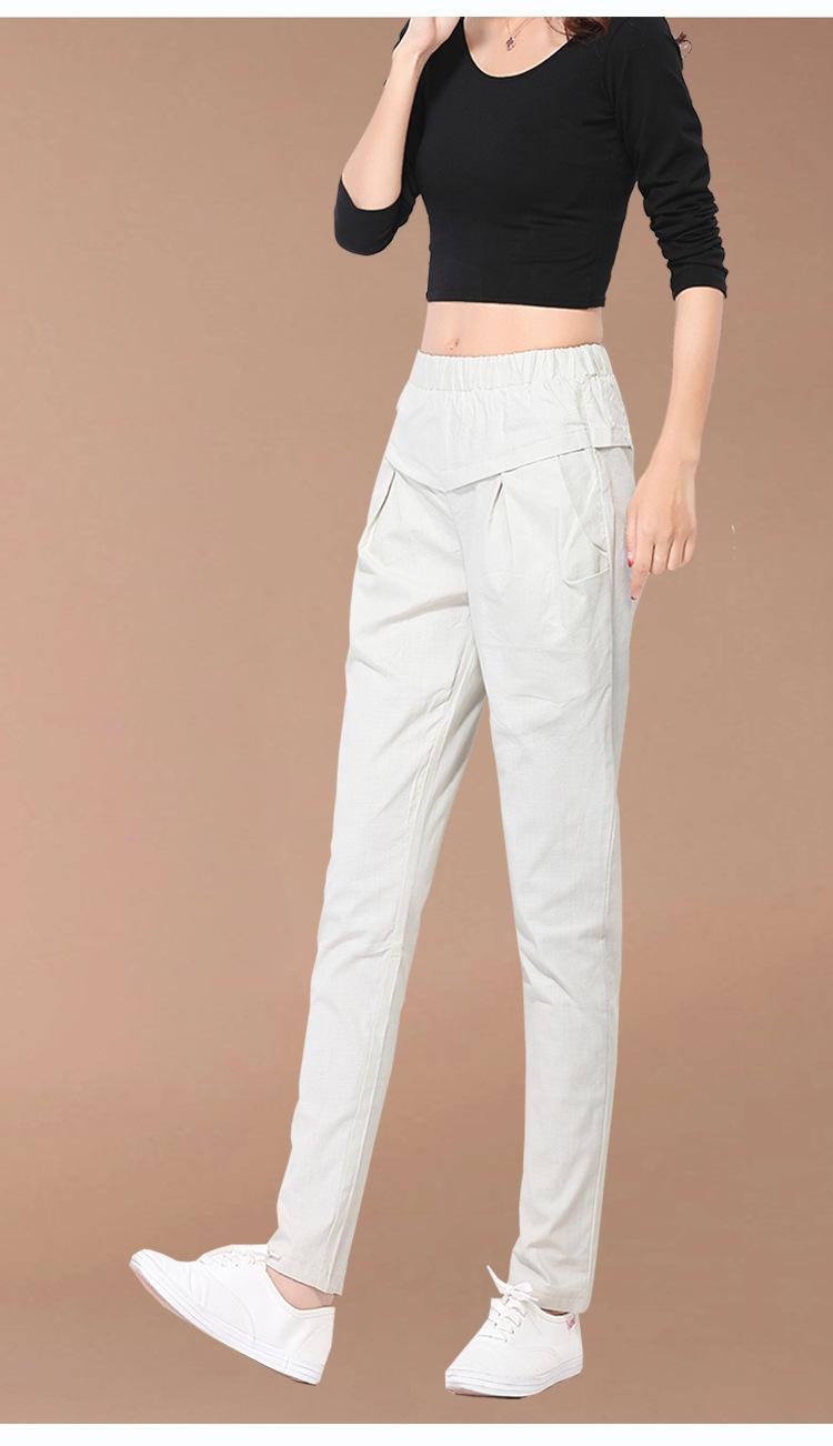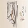Primavera/Verano 2025 Nuevo Algodón y Lino Suelto Cintura Elástica Color Sólido Talla Extra Lino Casual Pantalones Harem para Mujer