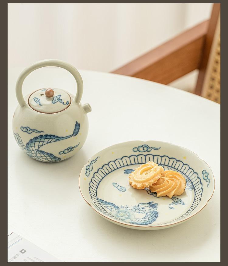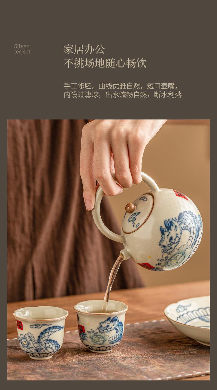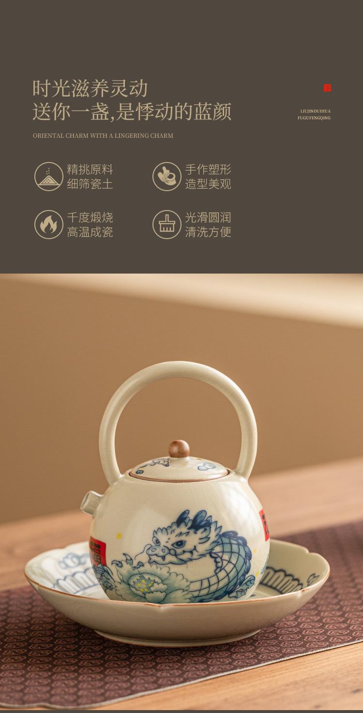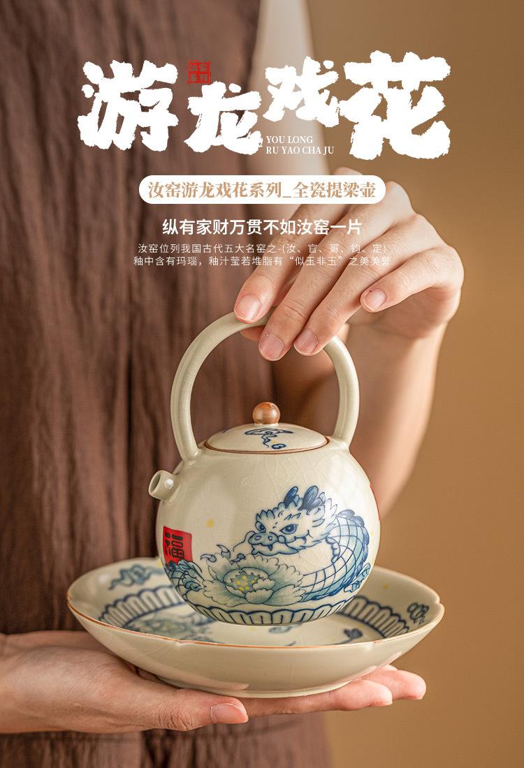Yuhuang ru kiln touring dragon playing flowers_liang pot [simple pack], Yuhuang ru kiln touring dragon playing...