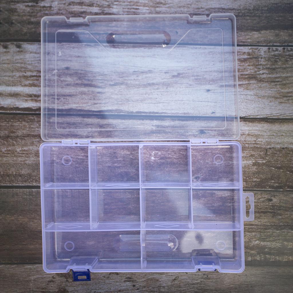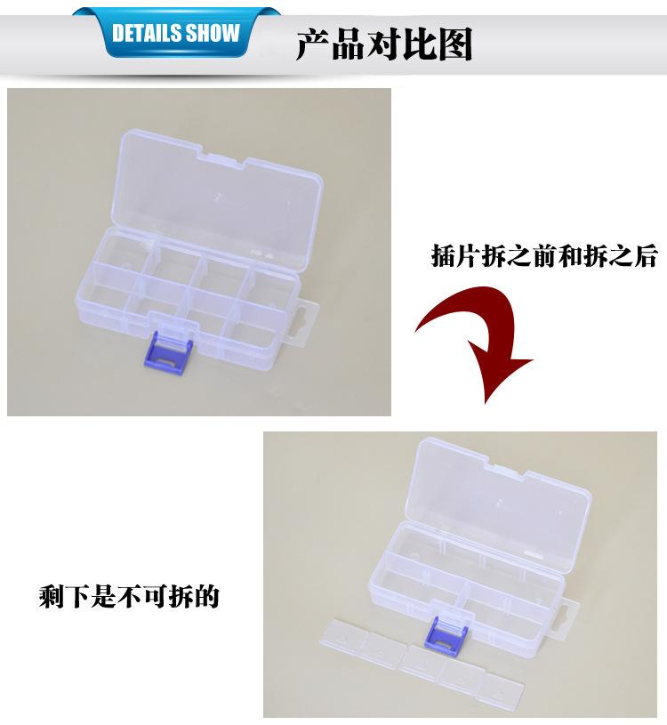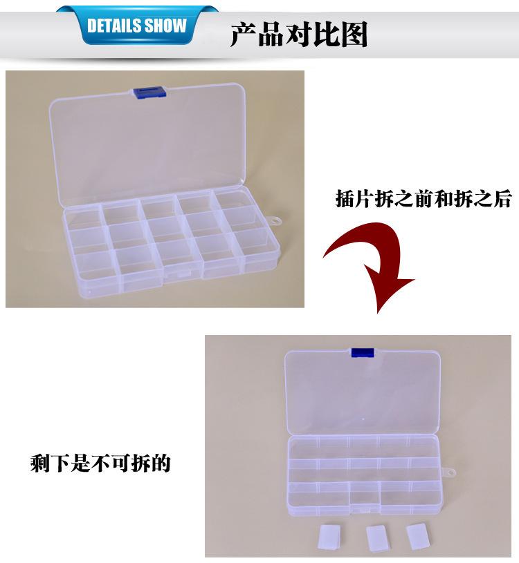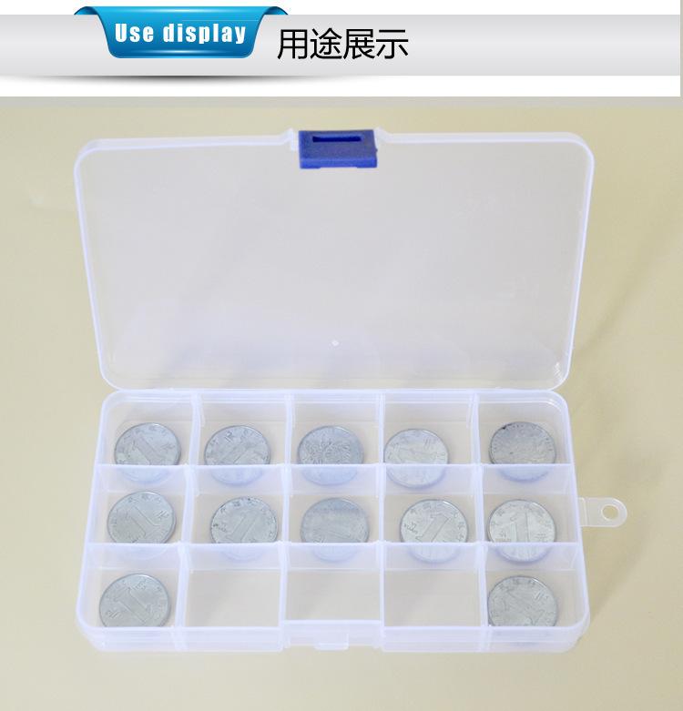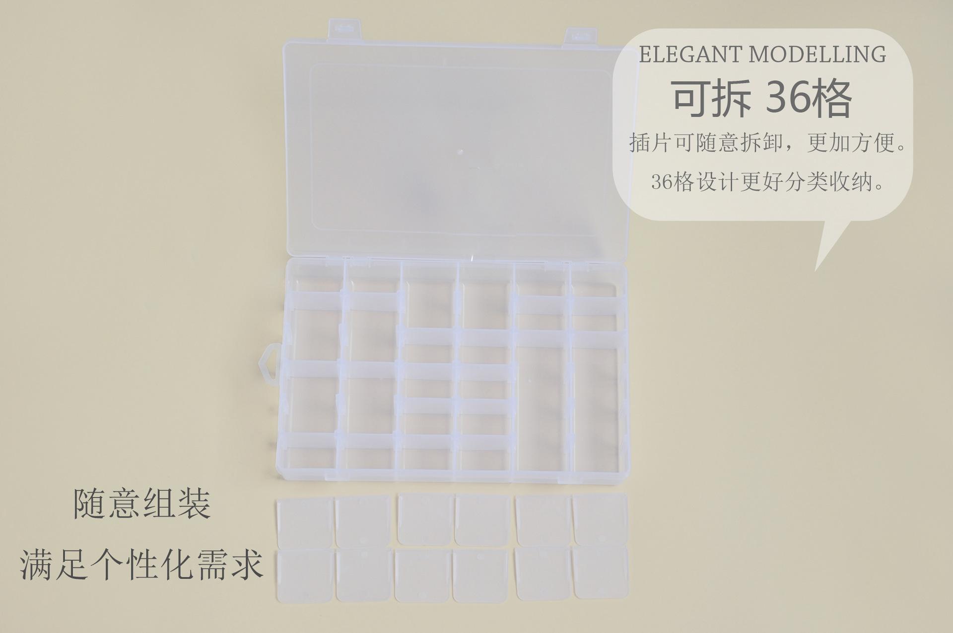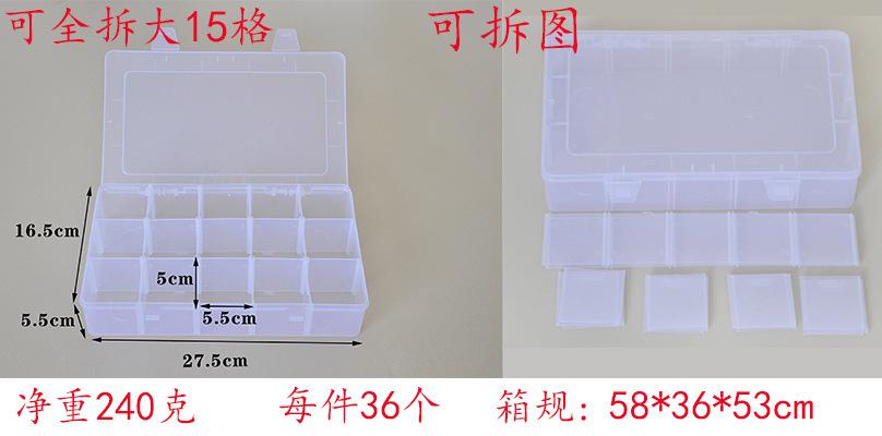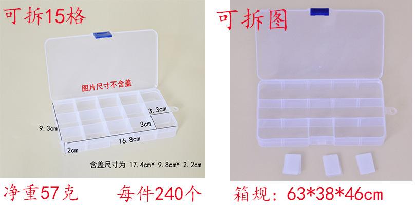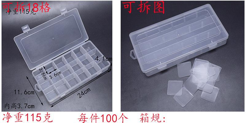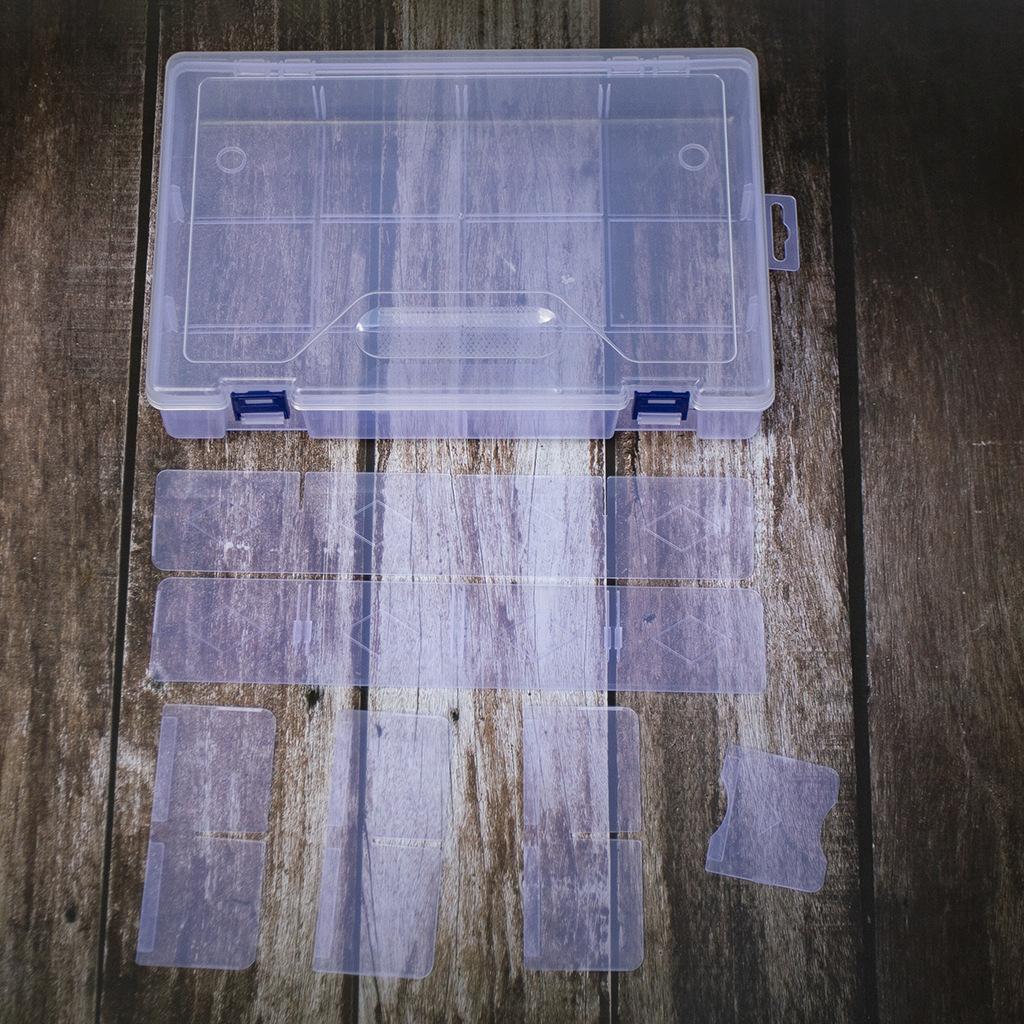 Caja de almacenamiento de plástico con 10, 15, 24 y 36 botones transparentes para accesorios de pesca y joyería.