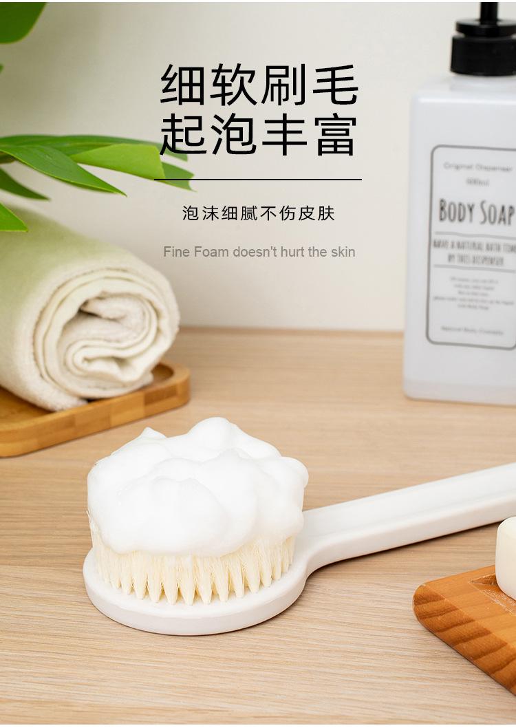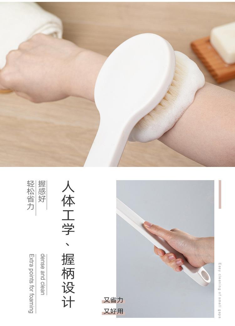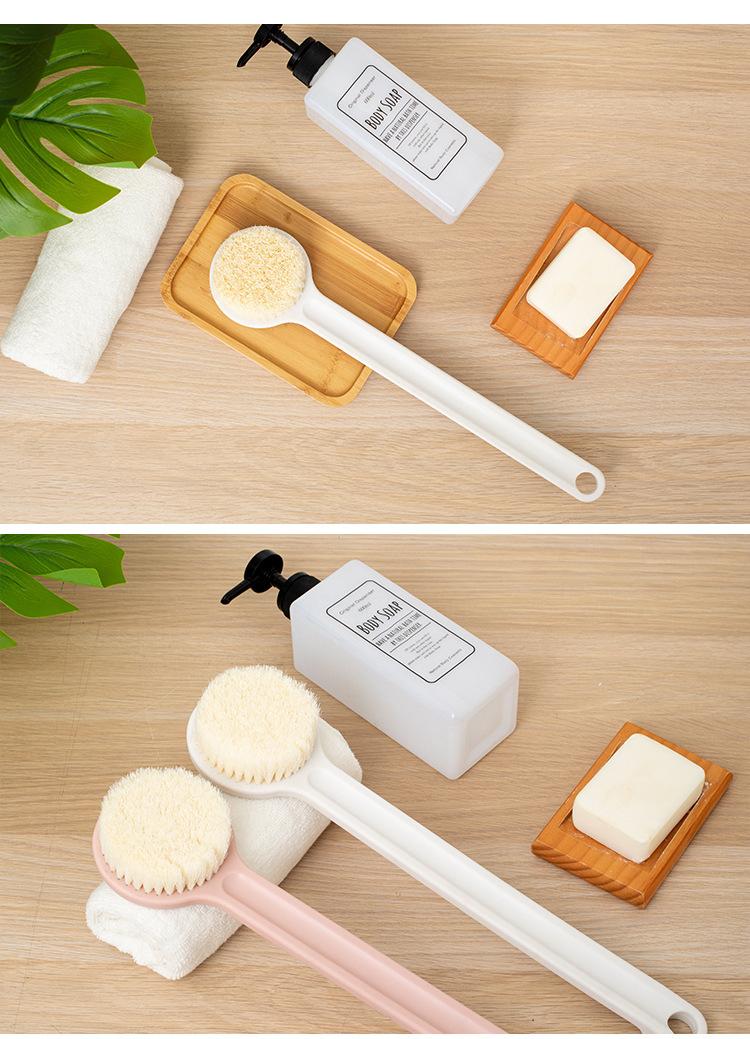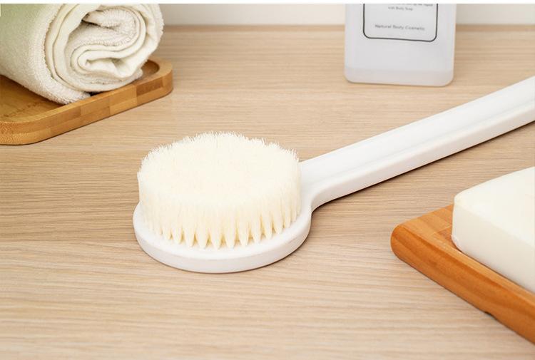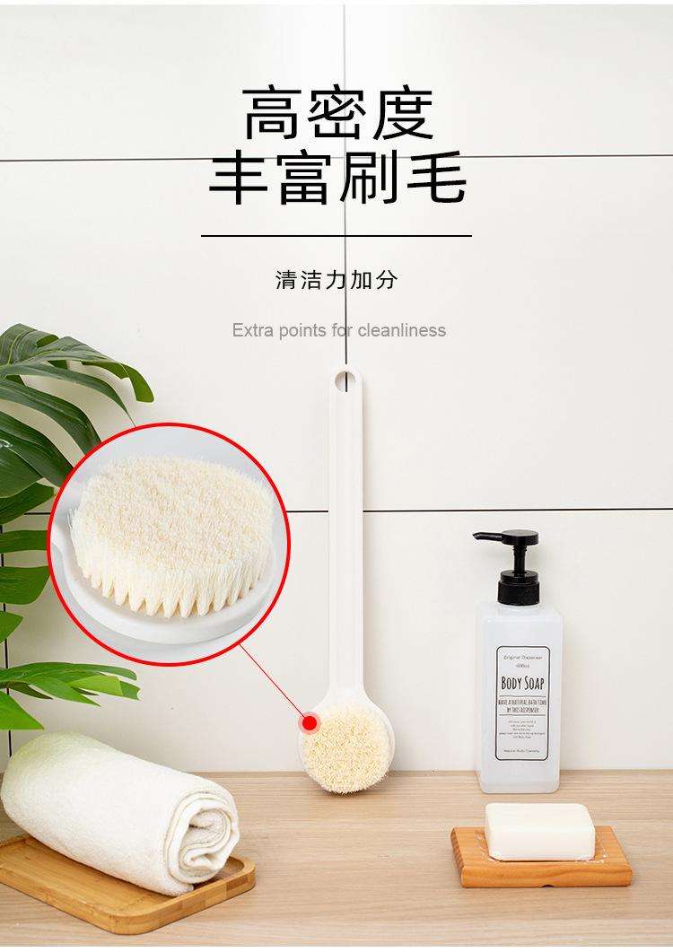 Cepillo de baño de mango largo estilo japonés, cepillo de baño de cabeza redonda grande con mango largo, cepillo para frotar la espalda con pelo suave blanco.
