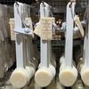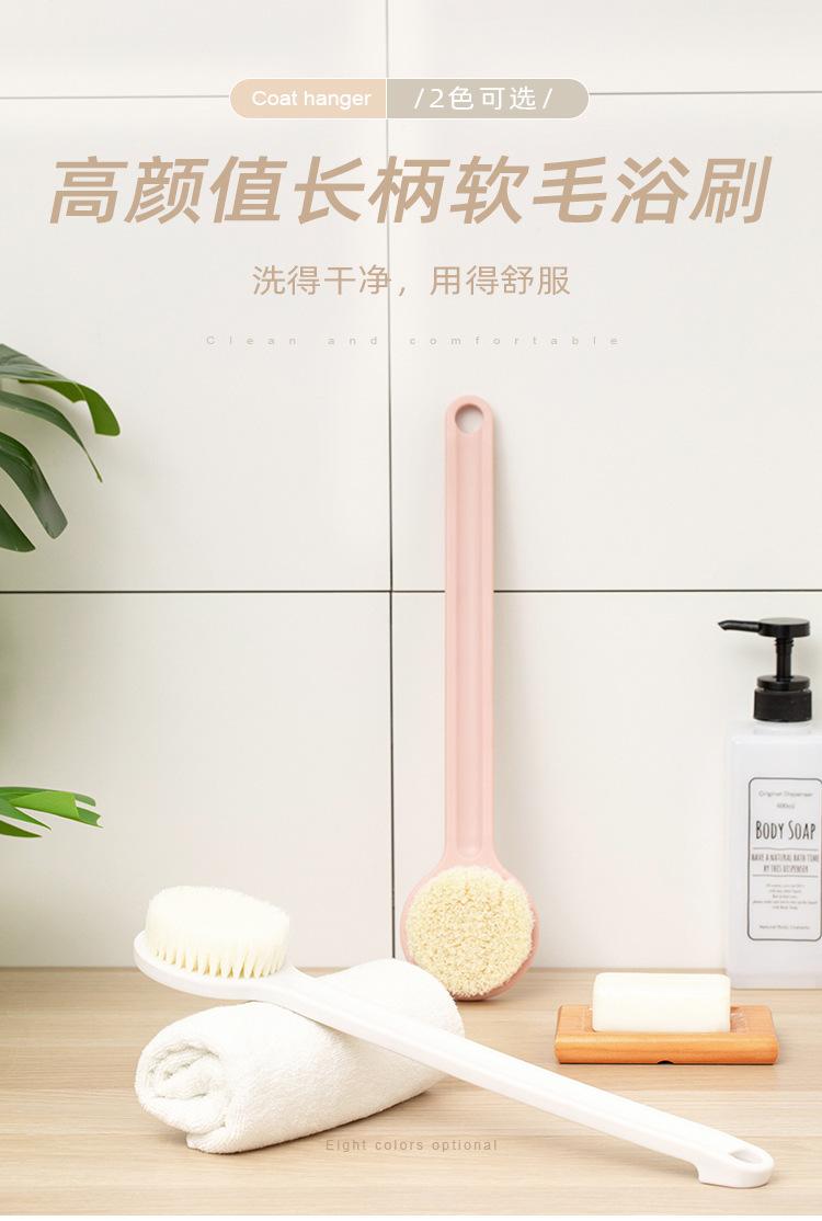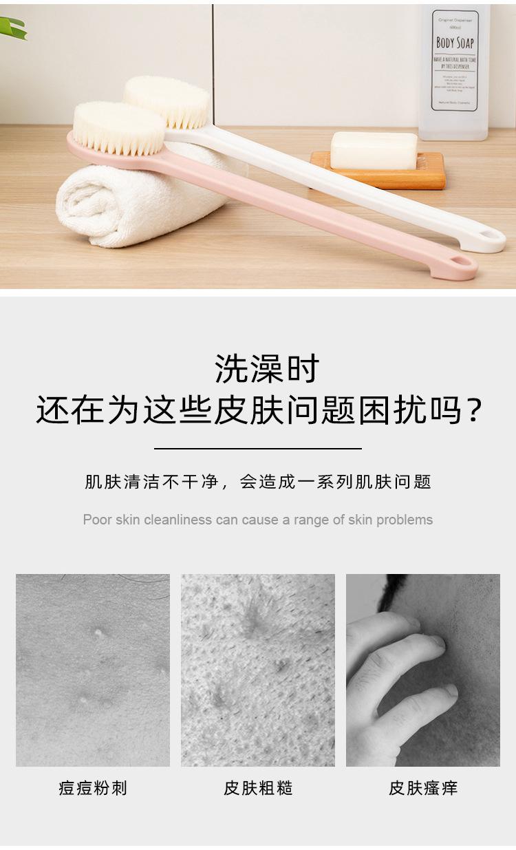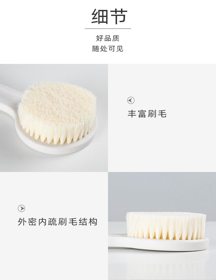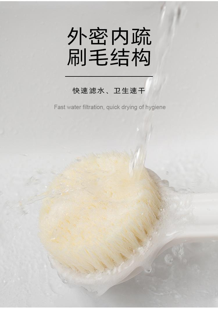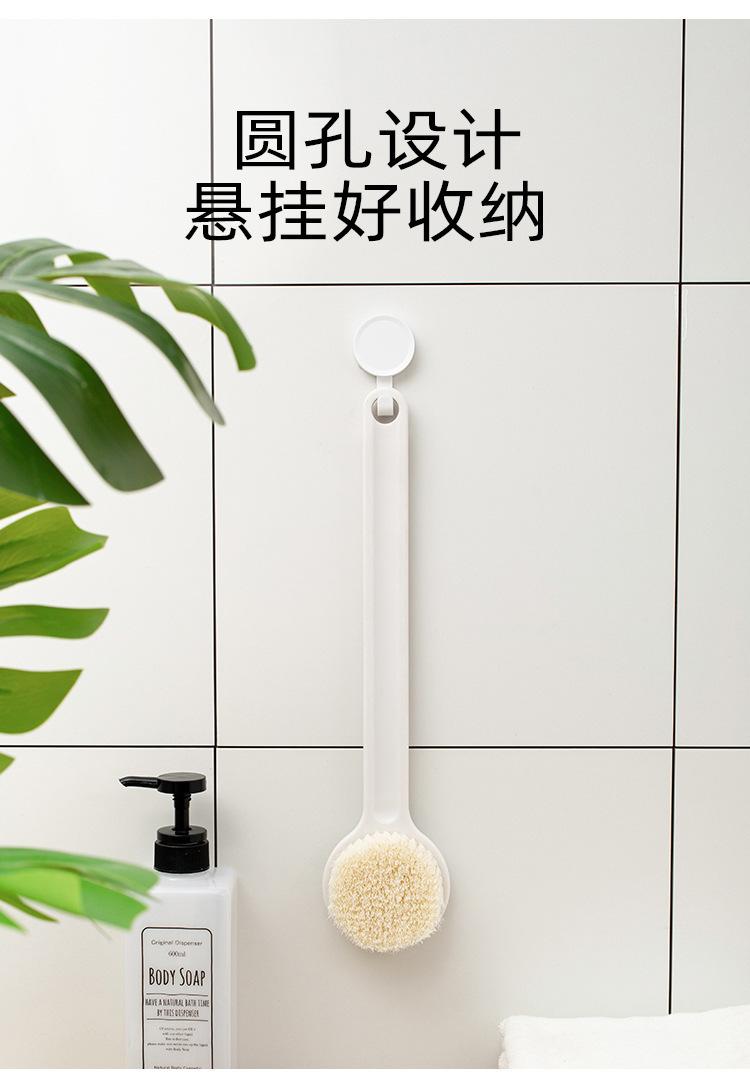 Cepillo de baño de mango largo estilo japonés, cepillo de baño de cabeza redonda grande con mango largo, cepillo para frotar la espalda con pelo suave blanco.