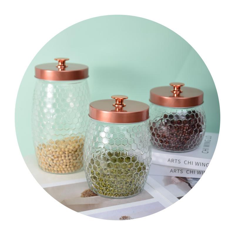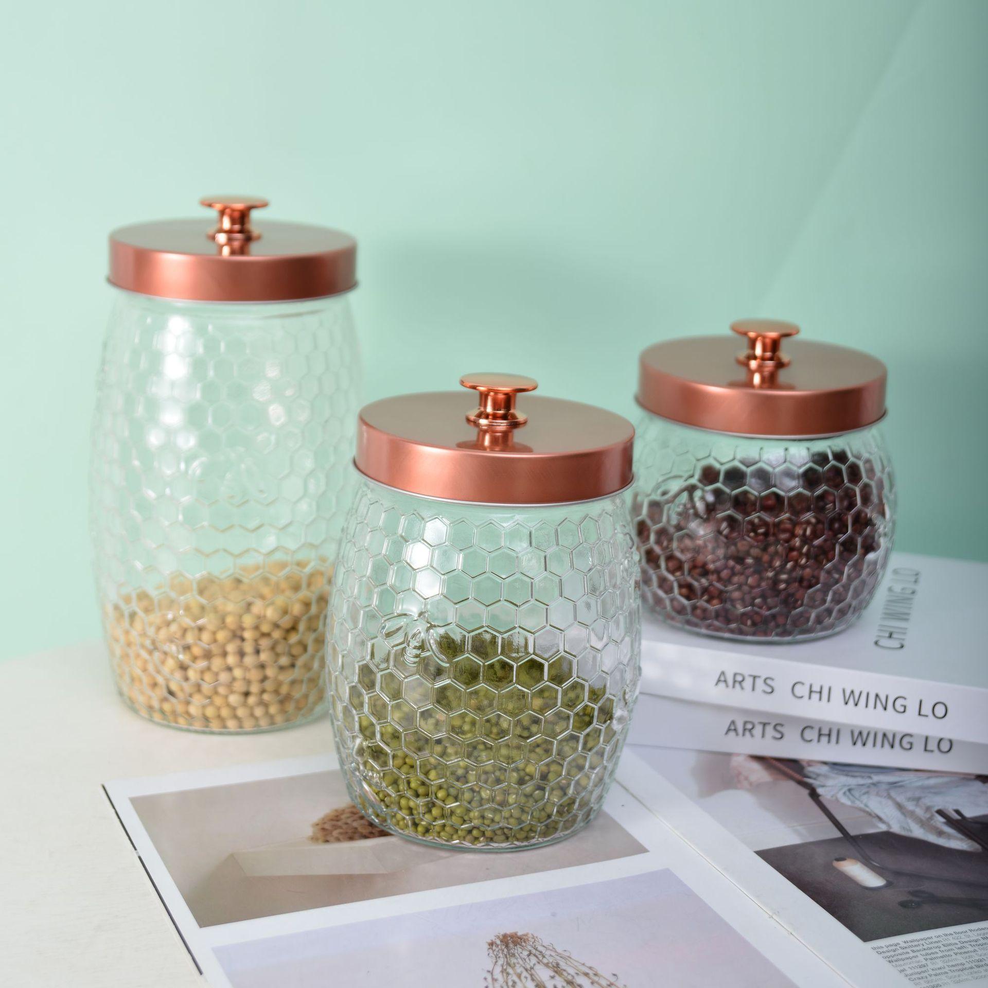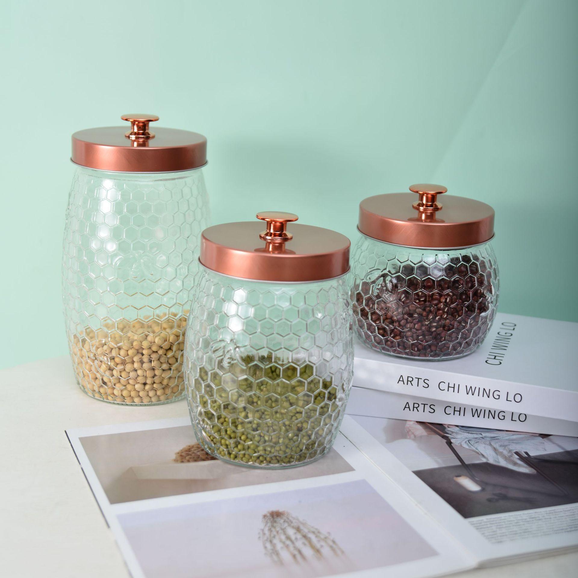 Tarro de almacenamiento redondo impreso de borosilicato de alta capacidad, transparente, sellado para té, tarro para almacenar granos de cocina
