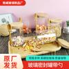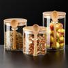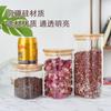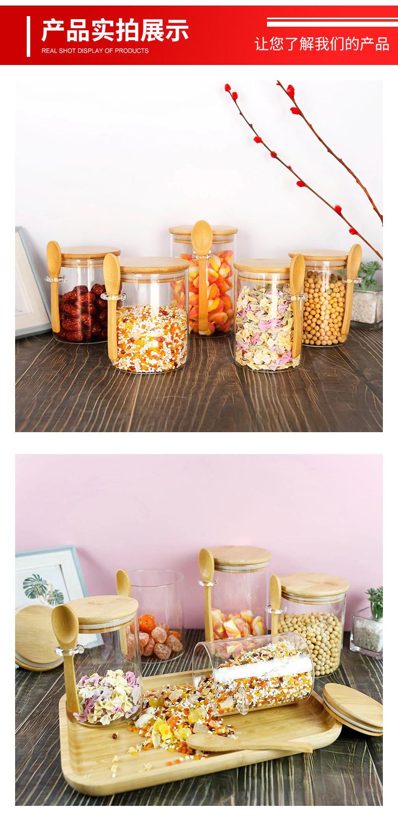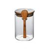 Frasco de vidrio sellado con cuchara, para almacenar cereales de cocina y frutos secos, con tapa de bambú y cuchara, transparente, para el hogar.