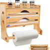 Estante de Cocina Montado en la Pared Caja de Almacenamiento de Papel Film Conservante de Plástico de Uso Múltiple Estante de Almacenamiento de Bolsas de Plástico Desechables de Papel de Rollo de Madera