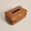 Caja de pañuelos de cuero simple y creativa, caja de servilletas de papel, caja de PU para hotel, caja de pañuelos tejida de cuero para el hogar y el coche