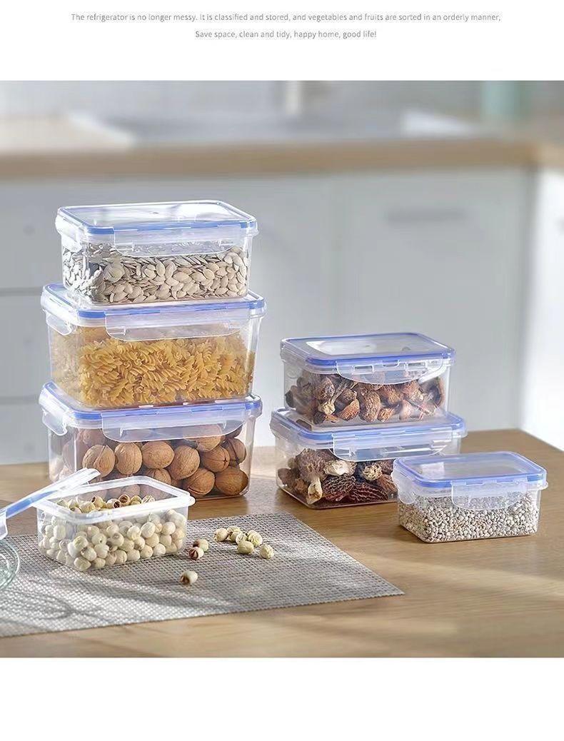 Fiambrera rectangular de plástico transparente con tapa para microondas, apta para alimentos, para conservar la frescura.
