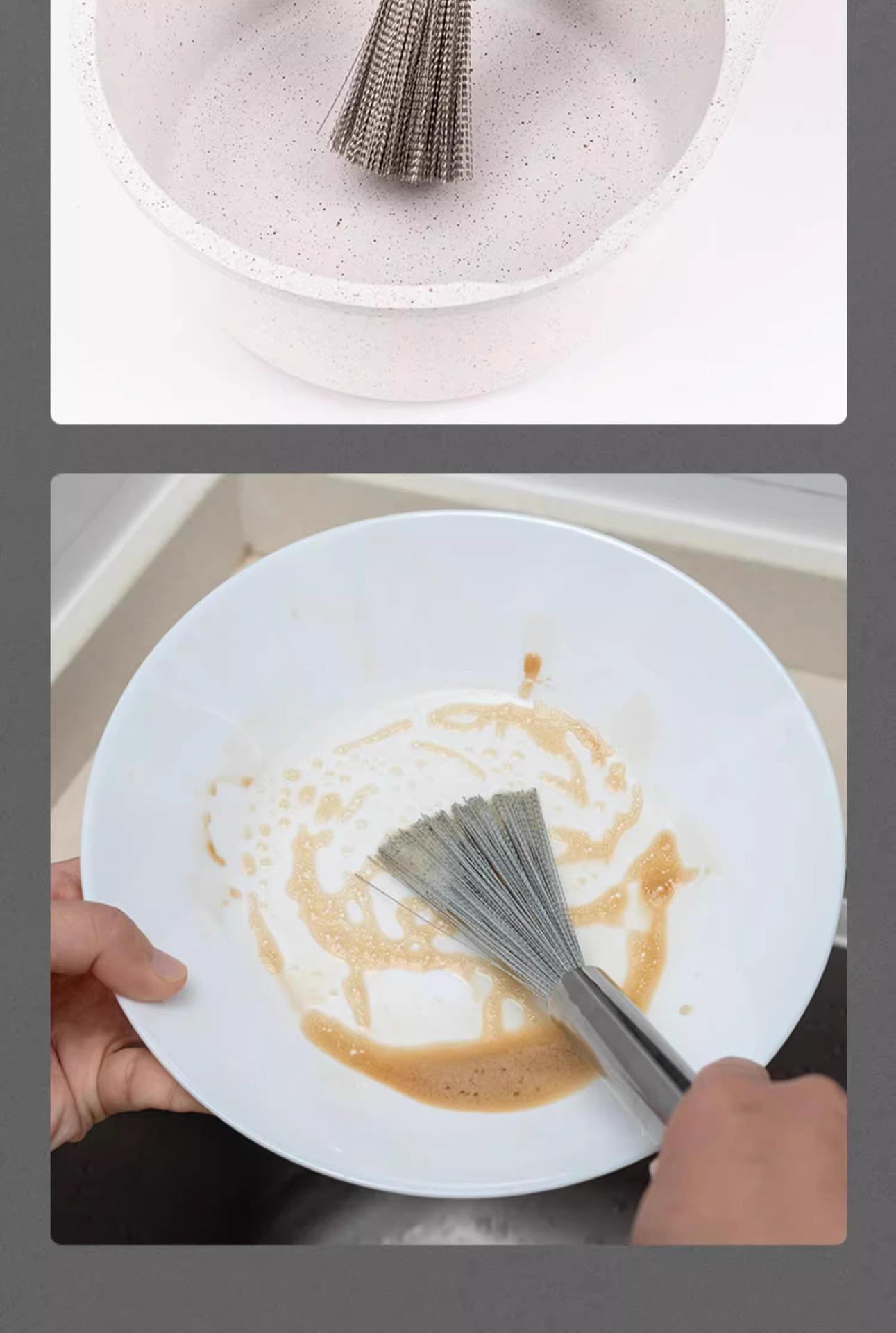 Cepillo para Olla de Acero Inoxidable Limpieza y Descontaminación de Ollas de Cocina Hogar Colgable Mango Largo Alambre de Acero Cepillo para Lavar Platos
