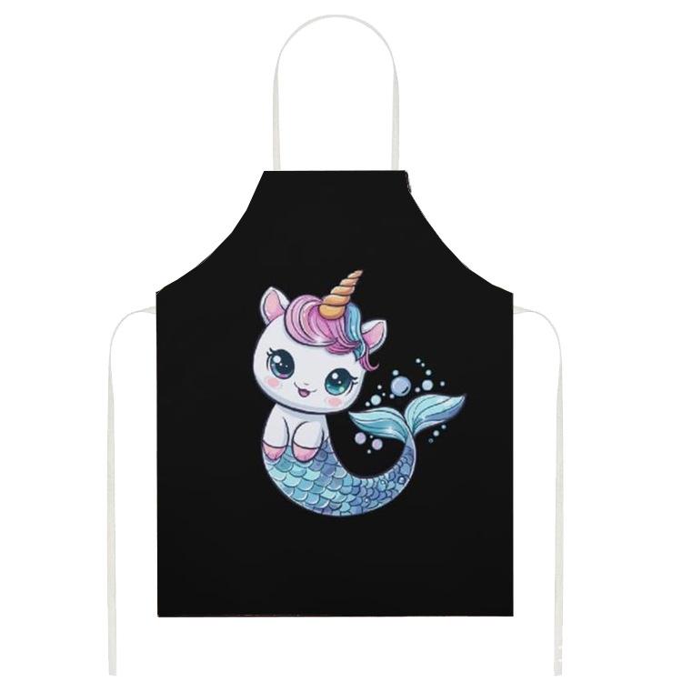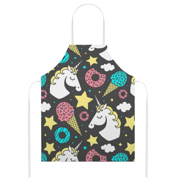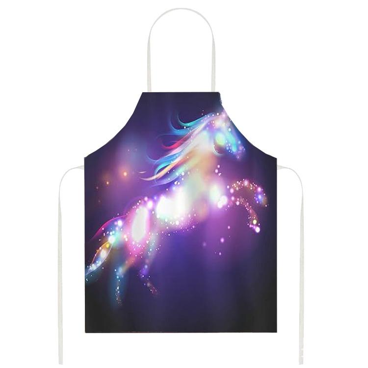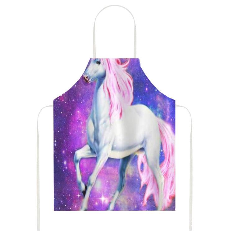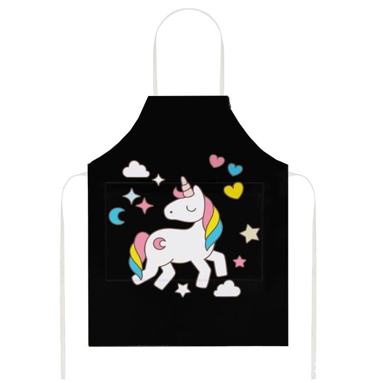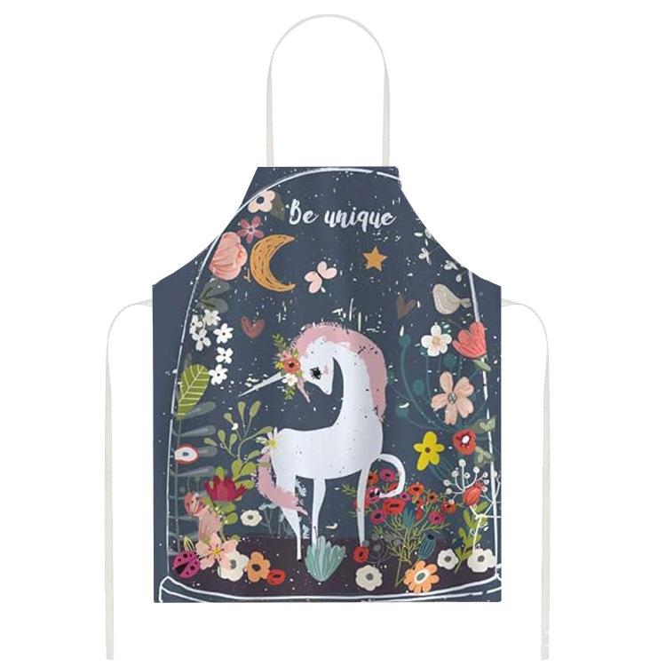 Delantal de Lino Impermeable Transfronterizo de Unicornio con Estampado Creativo que se Puede Personalizar para Tareas Domésticas de Cocina, Delantal a Prueba de Aceite y Antimanchas